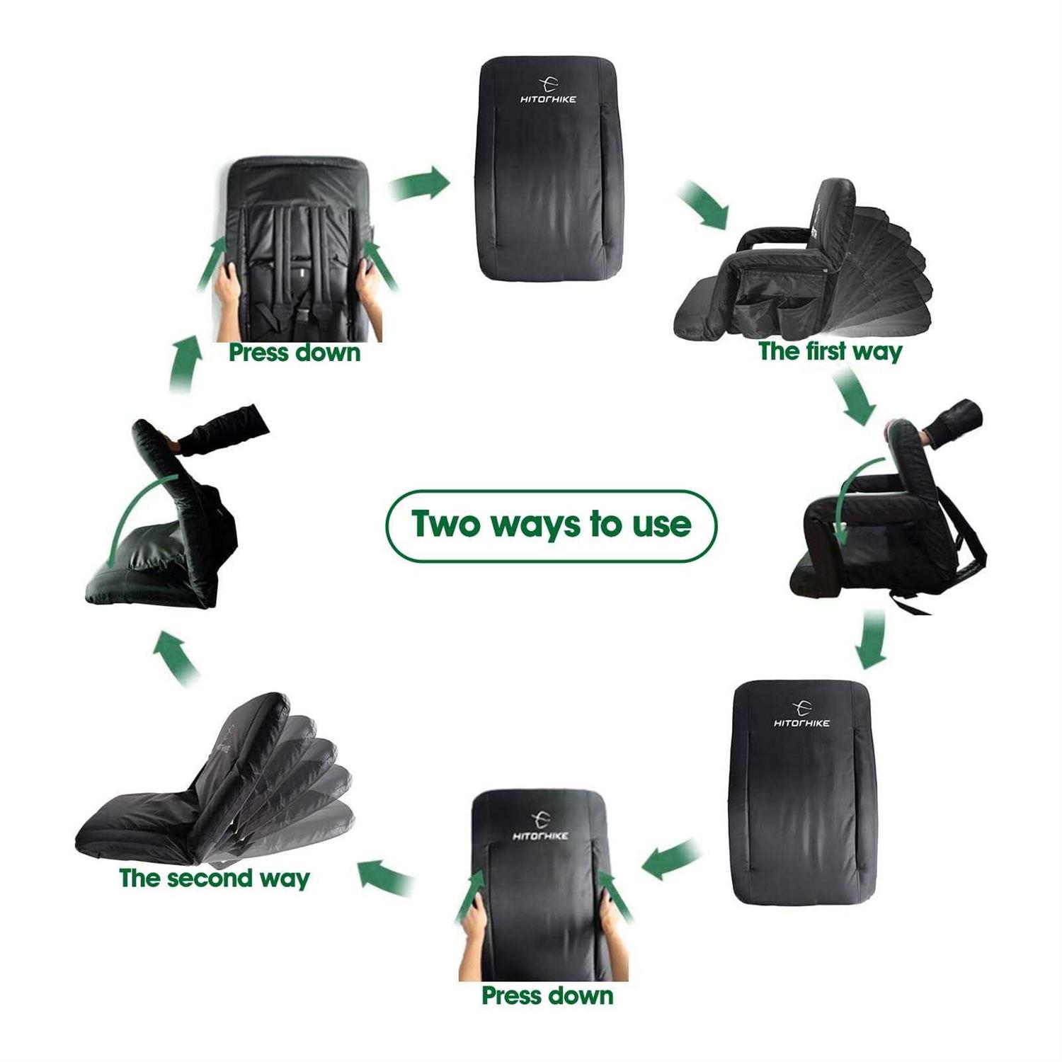 Hitorhike Stadium Seat for Bleachers or Benches Portable Reclining Foldable Type Stadium Seat Chair with Padded Cushion Chair Back and Armrest