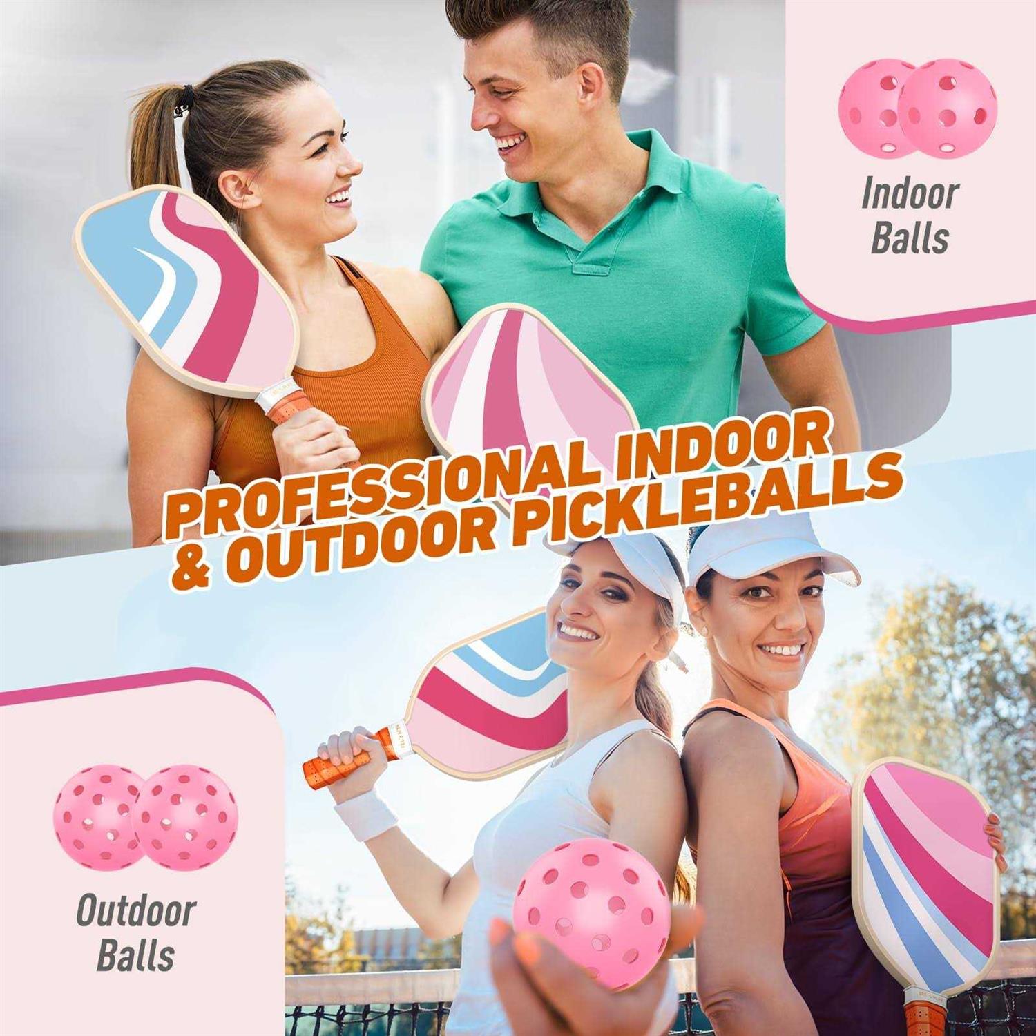 Sprypals Pickleball Paddles, USAPA Approved Pickleball Set of 4 with 4 Pickleball Balls and 1 Carry Bag Premium Wood Pickleball Rackets