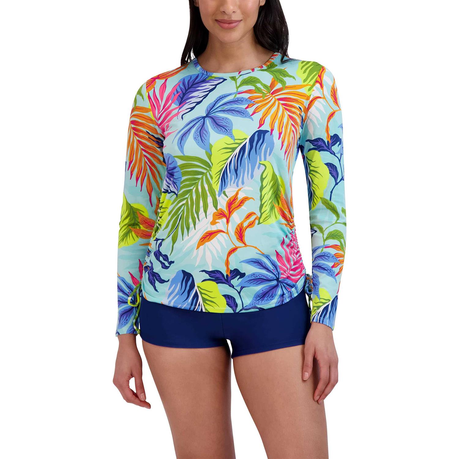 Stella Parker Women’s Standard Long Sleeve Rashguard Adjustable Side Tie UPF 30+ Sun Protection Quick Dry Swim Shirt