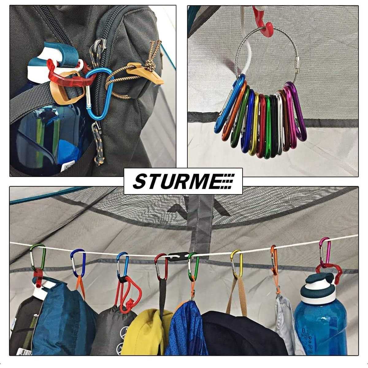 STURME 2 Aluminum D Ring Carabiners Clip D Shape Spring Loaded Gate Small Keychain Carabiner Clip Set Outdoor Camping Mini Lock Snap Hooks Spring