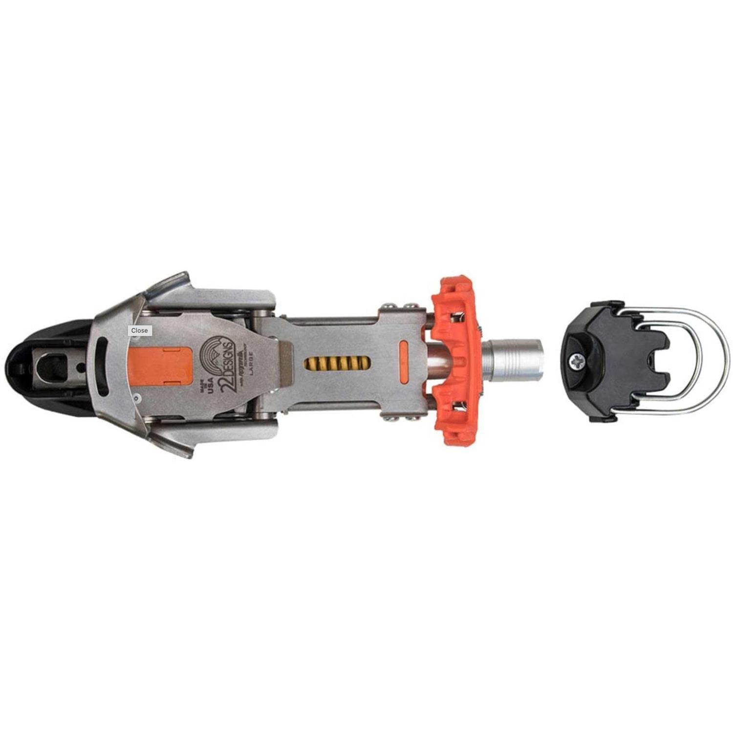 The Outlaw X is 22 Design’s all-around NTN binding features a lightweight and bombproof construction with sweet flex, copious spring travel, rugged steel construction, easy in and out, and blazing up and downhill performance. Now the Outlaw X comes with the Double Up Heel Climber with two climbing bails.An underfoot spring steel plate allows a lively flex while offering precision lateral control. A single long spring provides smooth travel and an easy preload adjustment makes it easy to find the sweet spot. Built in the USA with stainless steel, machined aluminum, and premium plastics, the Outlaw X is built to last, while the 6-hole mounting pattern will keep it solid on your ski. Borrowing proven touring technology from the Axl, the Outlaw X delivers serious free-pivot performance. With a true step-in and pole activated release, it’s always ready to run. The Outlaw X can release laterally, although it’s not guaranteed. The Outlaw is not a DIN-certified releasable binding. Ski at your own risk! Brakes sold separately.