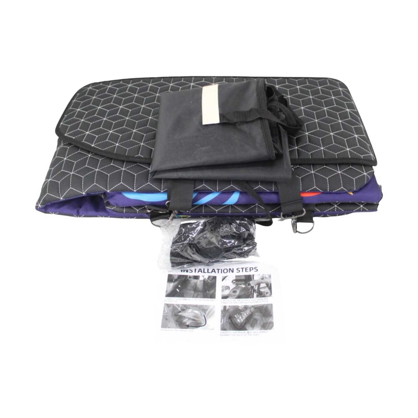 - Open the car travel camping bed and spread it to the back seat of the car.Buckle up the buckle and hang the strap on the car seat headrest pole.