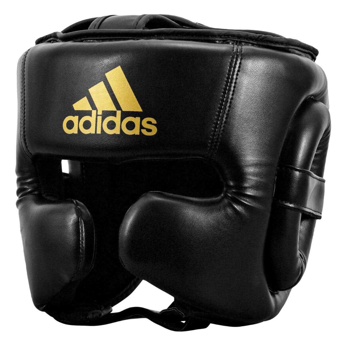 Adidas Speed Head Guard Adidas Speed closed face head guard offers great protection when sparring. The boxing head guard has cheek padding for extra protection. The head guard is made from durable PU artificial leather. Made with thick foam padding to ensure optimal shock absorption, ear and cheek protection and a hook and loop strap to ensure a secure fit, CE approved. Available in black and white.
