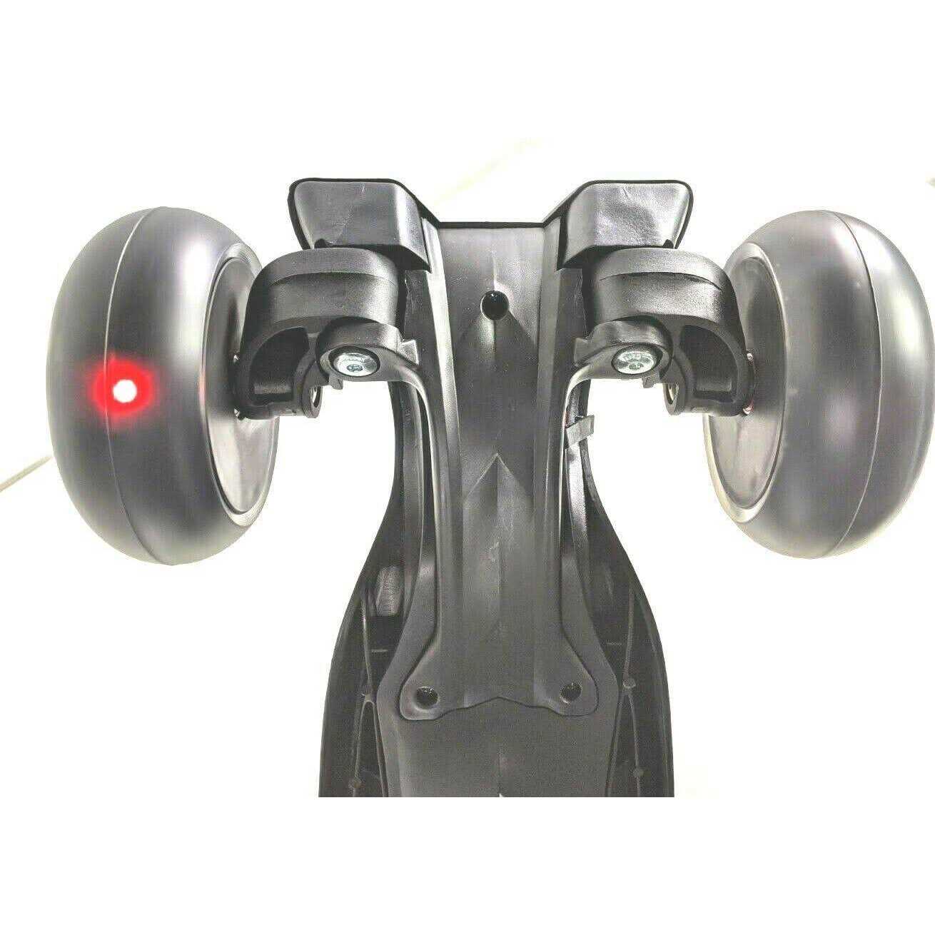 wide and slip resistant deck gives new riders stability to build their confidence and improve their riding skills. Allek Scooter gives your child a happy childhood and an outgoing personality. It is good for their physical and mental health. Keep kids away from long-playing mobile phone, tablet, laptop and games console. STURDY AND SECURE – This 3-wheeled and self-balancing scooter is constructed of high quality material to ensure stability and durability which allows your child to enjoy a smooth, fun and comfortable ride. Model B03 is available in lots of colors. ANY HEIGHT ADJUSTABLE – Aluminum scratch resistant T-bar comes with 3 preset stages, and furthermore, thanks to Allek’s creative toothed belt, the handlebar can also be adjusted to any heights between 25.5″ to 32″. Easily find your perfect riding position. WIDE AND THICK DECK – Innovative and integrated design on surface as well as bottom of the foot deck can carry up to 132 lbs. Reinforced axle bearings and well-built parts allow the scooter to run steadily and safely. SUPER BRIGHT WHEELS – Large and extra wide wheels light up and flicker with the crease of rolling speed while gliding on the road. LEDs inside the wheels are operated by centrifugal force without any batteries required. TURN AND STOP EASILY – Lean-to-Steer technology for turning helps kids improve better balance and coordination. Full-covered and metal-enhanced rear fender brake could easily speed down or stop the scooter with safety.