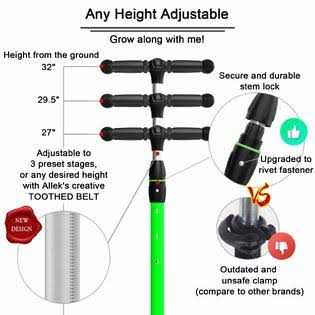 This is new version of Model B02. Allek Push Scooter Model B03 has the greatest ability to grow with a child, with the stability to help small kids gain confidence and balancing skills, and the durability to keep older ones zipping along joyfully for years. As a challenging level up, you can also prepare this scooter for toddlers. Allek B03 is well worth the investment!