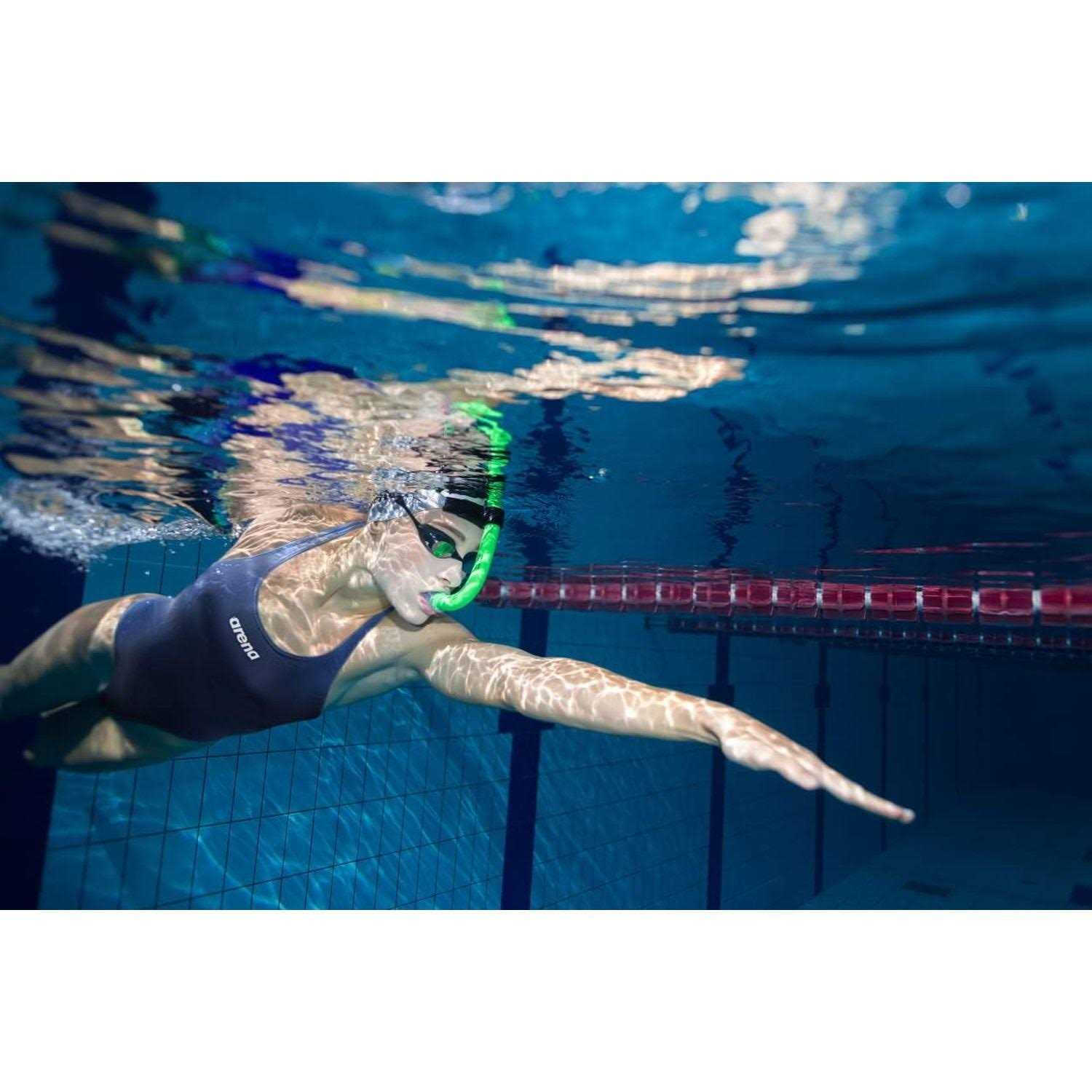 A great snorkel for competitive swimmers used for training. This black snorkel from Arena is made for training. It is mostly used for competitive swimmers who train with a snorkel on. It can be used by both girls and boys. The snorkel has a very soft silicone mouthpiece that makes it very comfortable. With the new practical clip, fixed headband and centered construction, the Swim Snorkel II has maximum stability. The snorkel is also available in 2 other colors, green and pink. Features: Mouthpiece made of a super soft silicone Made with a new strap that makes the snorkel easier to adjust around the head Made with a fixed headband and centered construction for maximum stability. It is used by competitive swimmers So if you need a snorkel for your next workout, this is a great choice.