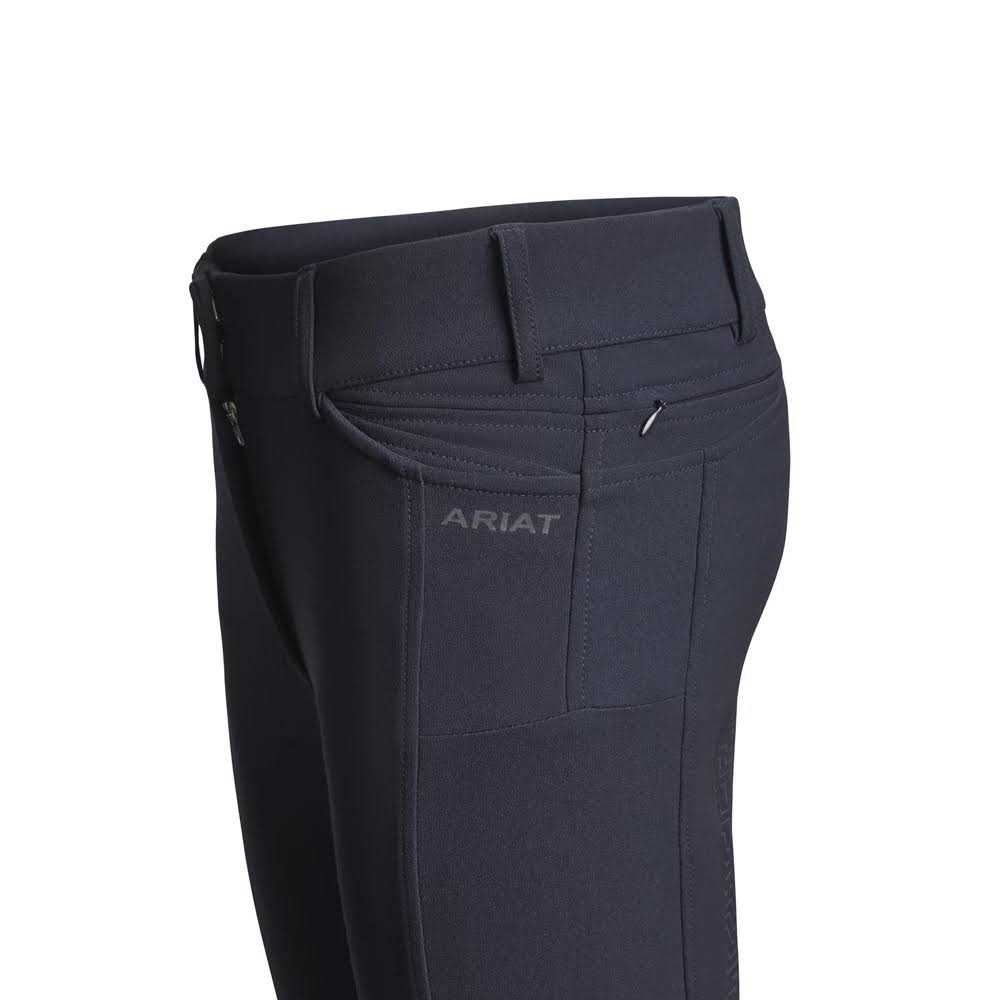 The Ariat Prelude Full Seat Breech is the perfect all day breech. Equipped with performance stretch, double weave twill fabric for outstanding flexibility and recovery. With full seat grip and exceptional support from the Core Control Technology, Calf Fit System and 2 concealed pockets. Added support features include Core Control Technology that provides targeted support for core muscles and a slimming silhouette. Calf Fit System CFS gives custom support at the calf and ankle with alleviates pressure and friction points. Technical four way stretch twill. Silicon grip full seat. Core Control and Calf Fit System technology. Flattering yoke front and back. Front pockets. Concealed zip back pocket. Invisible zip phone pocket at left thigh. Performance stretch double weave knit. Just the right amount of flex for increased mobility and all day performance.