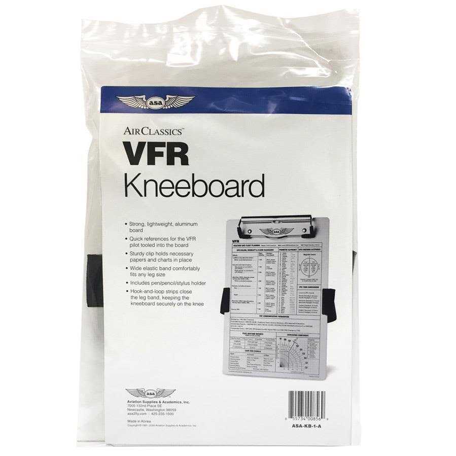 These durable, attractive kneeboards from ASA make cockpit organization a snap. Fabricated from brushed aluminum for impressive strength, these attractive boards feature must-know IFR or VFR information silkscreened directly onto the boards. Each kneeboard comes with a 1 inch wide elastic leg band with Velcro closure that provides a secure, comfortable fit to any size leg. Its 4 inch metal clip securely fastens papers, charts, and other must-have documents for easy, front-and-center viewing. Also includes a pen/pencil holder. Each kneeboard measures 6 inch x 9 inch. A proven, affordable organizational tool that pilots at all levels will love.