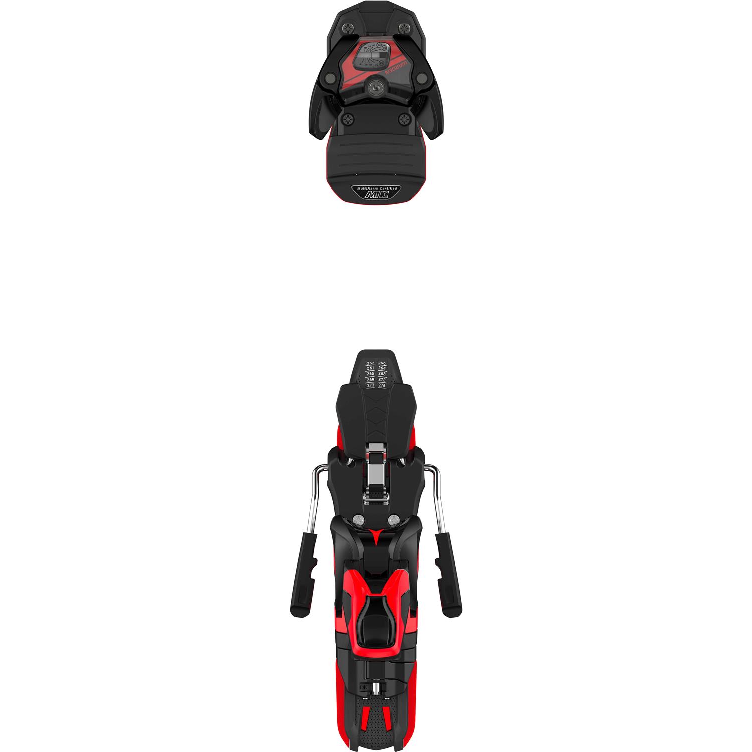 The Atomic Warden 11 MNC is a solid option to go with any all-mountain ski Multi Norm certified, this binding works with all ISO norm ski boot soles – DIN, Touring and Walk To Ride (WTR). It has an Oversized Platform and U-Power Toe – a super-wide platform that provides extra lateral power transmission, steering, flex and dampening. This platform is also 30% wider than comparable bindings so works particularly well with progressive wider skis. It has a DIN range of 3.5 to 11. It also features a Low Profile Chassis, Progressive Transfer Pads and a special lightweight heel that keeps your ski nice and agile. Toe Piece U-Power Toe – Delivers powerful, precise steering. Low profile and MNC (Multi-Norm Compatible). Automatic Wing Adjustment – Adapts automatically and easily to your boot width and height. It also keeps release values constant for worn out boots. Manual Toe Height Adjustment SCP Slider Pedal – Anti-friction system to guarantee safe release. Heel Piece Freeski Brakes – Self-retracting brakes for a close position to the heel so they never catch. Heel Flex Interface – Guarantees natural ski flex. Additional Features Low Profile Chassis – A low stand height improves your feel for the terrain and enhances power transmission to the ski. Oversized Platform – A super wide (71 mm) platform ensures maximum lateral power transmission. Progressive Transfer Pads – Special inserts underneath the toe and heel increase damping and forgiveness. Multi Norm Certified (MNC) – Compatible with ISO 5355 Alpine, ISO 9523 Touring, WTR (Walk to Ride) and GripWalk Soles. Not compatible with non-ISO 9523 standard touring soles with shortened toe and heel lugs.