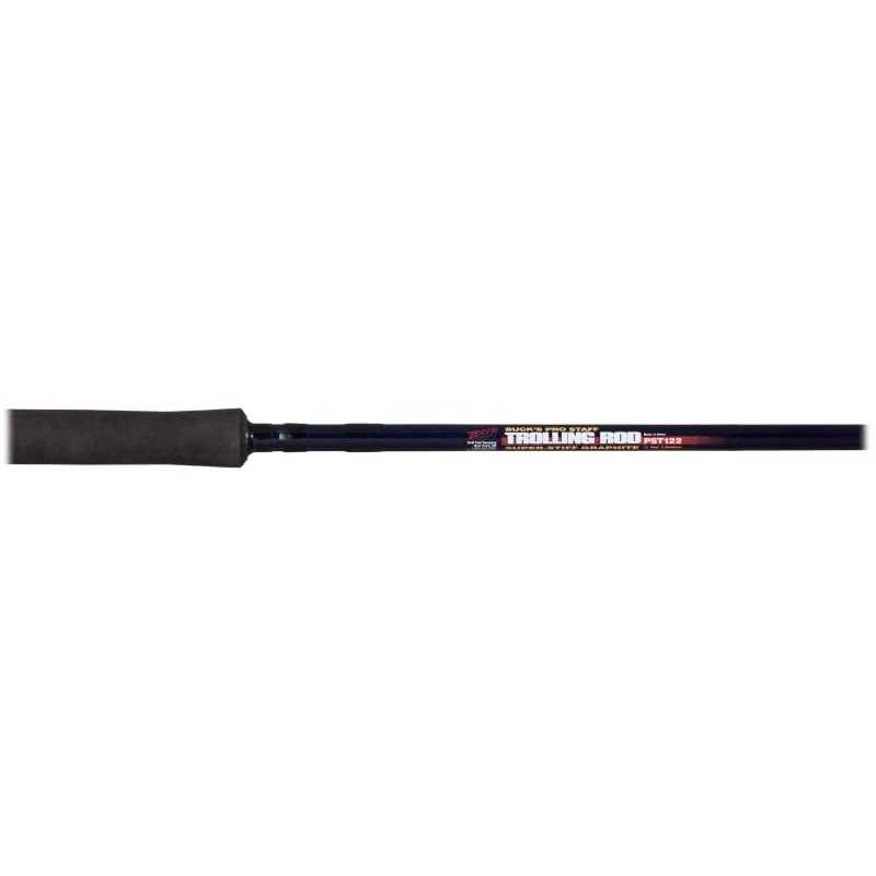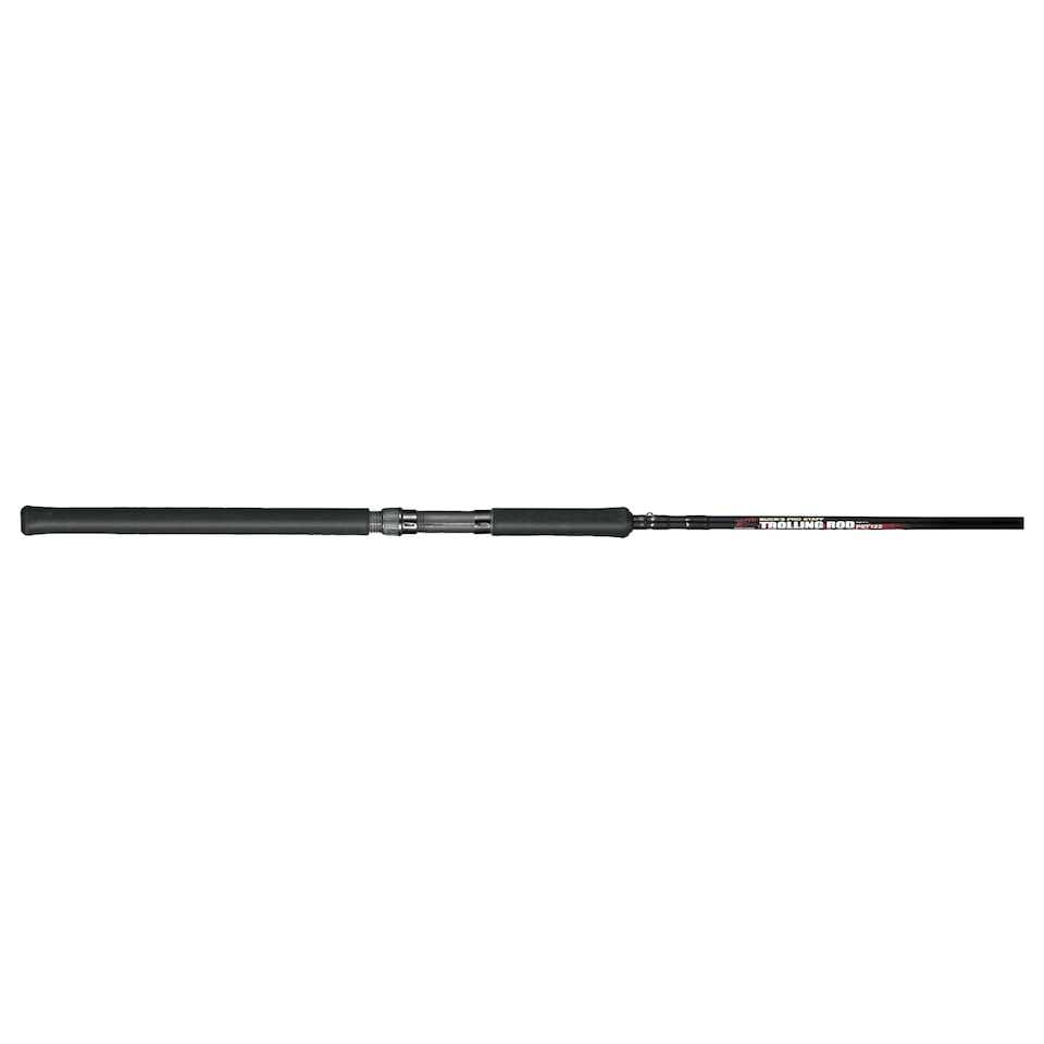This rod has a great blend of strength and tip action for even the most aggressive trolling enthusiasts. It was tested using two jigs (spaced at various depths), along with a 5 ounce sinker attached to the line, at trolling speeds up to 2 m.p.h. The reel seat is placed slight upward on the 21 EVA handle to enable easy removal from any rod holder, yet still allows ample room for your hand. 100% graphite construction.”