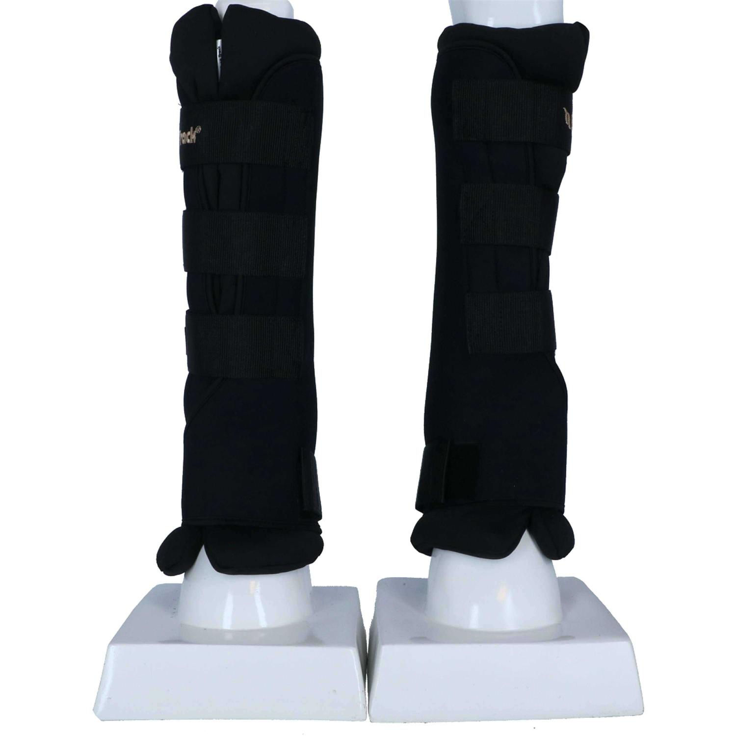 Black Sold as Pair Quick and Safe to Use Therapeutic Thermal Warmth No Liniment is needed BOT03 This is a great leg wrap for every horse. Quick and safe to use, especially for those less experienced in wrapping legs. This Therapeutic horse leg wrap uses a shell of neoprene, inside is a pillow wrap with four Velcro closures. Designed to reflect the horse’s own body-warmth, it creates a soothing far infrared thermal warmth, which can help alleviate pain associated with inflamed muscles, ligaments, tendons and joints. Used for both injury prevention as well as injury recovery. No liniment is needed. You can also replace poultice with these leg wraps. The wraps take down swelling in the horses legs in just a few days and also can get wind puffs to be softer or can reduce them completely. The Quick Wrap is designed so no additional bandage is needed.