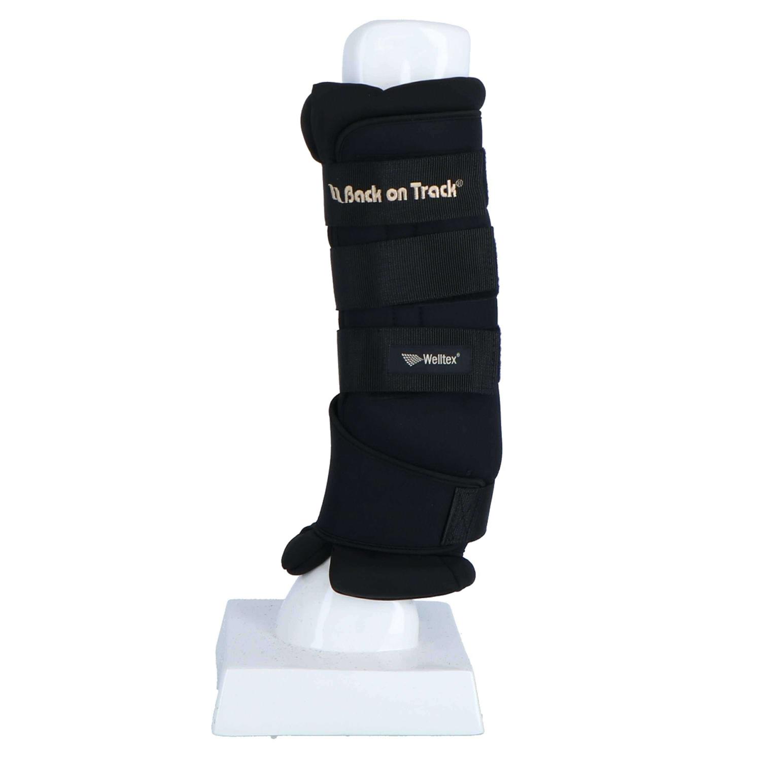 Back on Track Quick Wraps make applying standing bandages quick and safe for everyone. Designed with state of the art breathable mesh material that contains polyester thread embedded with a fine ceramic powder. Back on Track pain management products are crafted in Sweden from a revolutionary fabric impregnated with ceramic powder, based on FAR Infrared Ray therapies that have been widely used in Europe and the Orient. The ceramic powder reflects body heat in the form of these rays, which substantially increase blood flow, thus reducing pain and swelling, as well as stimulating the healing process. Used for both injury prevention and recovery. Shell of neoprene attaches to a pillow wrap with 3 Velcro closures. Alleviates pain associated with inflamed muscles, ligaments, tendons and joints. Replaces poulticing No liniment is needed, but “Sore No More” is recommended if a liniment is desired. Reduces swelling in just a few days and can soften or reduce wind puffs. No additional bandage is needed. Size: NEW 10-inch for ponies!, 12 inch, 14 inch, 16 inch, and NEW 18 inch for your big guys Sold as a pair Back on Track Products are designed to work with your horses own body heat and should not be compared with magnetic therapy. Warning: These products are not to be used on broodmares during pregnancy.