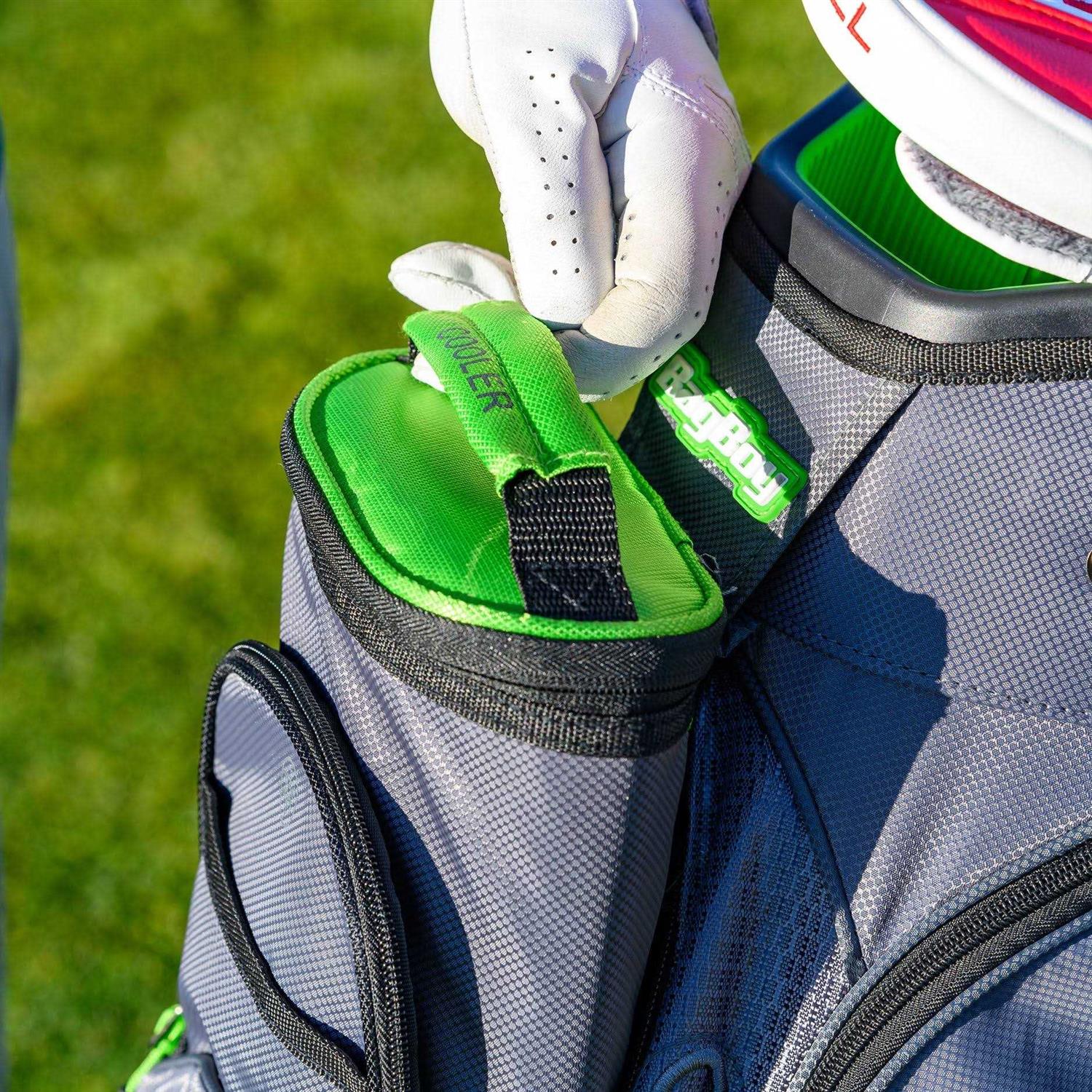 Stay hydrated on the course with the Chiller cart bag featuring a removable insulated cooler bag that holds up to six 12-oz. cans.
