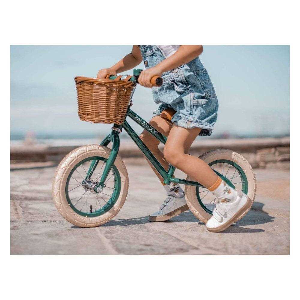 This Banwood First Go balance bike is one of the most stylish on the market. With its steel frame and adjustable handlebars it helps your child develop essential skills such as confidence motor skills and of course balance. Perfect for that all important Christmas or birthday gift this Banwood balance bike is sure to wow your child and entertain them for hours. Whats Included · Steel Frame · Bike Seat · 12 Wheels · Safety Bell · Wicker Basket · Easy Assembly. Features · Minimal Seat Height 40 cm · Maximum Seat Height 50 cm · Adjustable Height Handlebar 50 cm to 59 cm · Ergonomic and Comfortable Seat · Wicker Basket and Bell accessories included · Weight 4.5 Kg · CE Certification for children between 3-5 years Your child will love playing on the Banwood First Go Balance Bike Suitable for use from approximately 2 to 4 years your little one will have hours of fun playing with this bike. A balance bike is a perfect introduction for your little one to the wonders of cycling giving them the freedom to play and explore their natural motor skills until they are ready for the transition to pedals. The classic steel upright frame is safe and durable and features a handy wicker basket for stowing trusty friends and other precious treasures collected on their journey. Steel frame in a choice of white vanilla pink dark green navy blue or red. The minimal seat height is 37 cm and the maximum seat height is 44 cm. The handlebar height is adjustable from 50 to 59 cm with 12 wheels and weighs 4.5 Kg. Matching helmet also available to buy separately here.