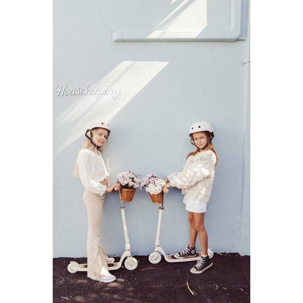 Banwood Maxi Scooter is the perfect vehicle for older children. It is designed in a timeless vintage style without sacrificing functionality and safety. It gives your child the opportunity to develop and build self-confidence while having fun! This white scooter with two wheels is designed to stand the test of time. It features an ergonomic T-handlebar that easily adjusts to your child’s height, a lightweight aluminum frame, a classic steering system like a bike, vintage-style rubber grips, and a non-slip oak tread for a safe ride. The Maxi Scooter comes with our popular wicker basket, perfect for imaginative play. It can be used to carry essentials to school, the park or your next adventure!