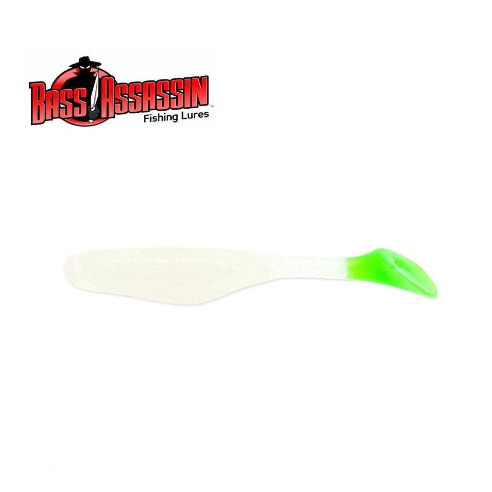 Bass Assassin Walleye Turbo Shad, Glow, 4 inch, 10Pk, Soft Baits; Bass Assassin Walleye Turbo Shad, Designed similar to other popular baits and lures the Walleye Assassin Turbo Shad continues the excellence that anglers have come to expect of the Bass Assassin bait. With a super soft plastic that gives an amazing tail action with even the smallest twitch of the rod and the fish will be unable to ignore and resist this good tasting bait. Many of the colors of this bait come infused with the BANG Fish Attractant.