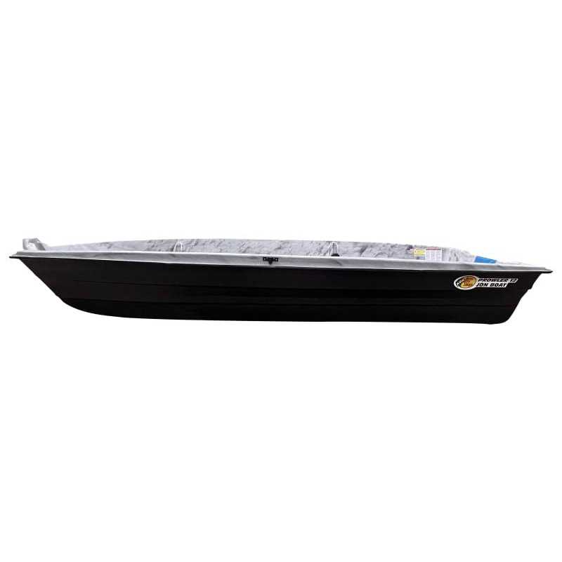The Bass Pro Shops Prowler 12′ Jon Boat sports reinforced motor mounts front and rear, with battery storage locations fore and aft. Anglers will appreciate this impact-resistant jon boat’s recessed drink and tackle holders, 4 rod holders, and oarlock sockets. Lightweight and easily transportable, the Prowler 12′ Jon Boat includes room for all your tackle and a cooler. Constructed of rugged UV-stabilized Fortiflex high-density polyethylene with built-in closed cell foam flotation, this Bass Pro jon boat operates virtually maintenance-free and makes the ideal choice for fishing and hunting, with a large seating area and a protective vinyl rub rail. Trolling motor and battery (not included). Width: 52″. Weight: 110 lbs. Max Wt. Cap.: 532 lbs. Made in USA. Portable and impact-resistant Virtually maintenance-free Ideal for hunting and fishing Protective vinyl rub rail