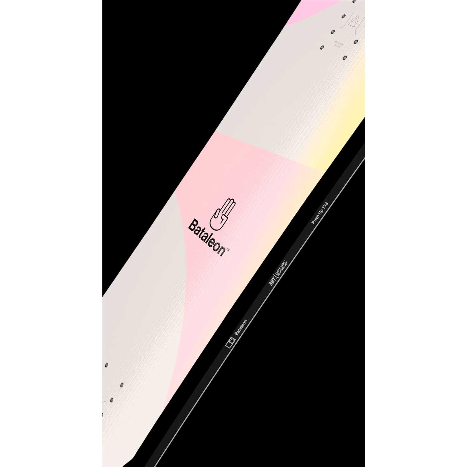 The Bataleon Push Up is one of the most popular and long-running models of the Bataleon range for women. The Push Up has a medium flex and a medium camber for plenty of performance on-piste. It is quick to respond and is intended for women with an advanced experience level. The Freestyle 3BT ensures a fast edge change and is equipped to handle those turns. The light core is made of Paulownia and poplar wood and ensures stability at higher speeds thanks to the biax laminate. The long nose and tapered shape make sure you can handle the powder. Made to shred all over the mountain with.
