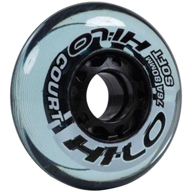 The Hi-Lo Roller Hockey Wheels are designed for use with Hi-Lo chassis but are compatible with other chassis that take the same size wheels. Perfect for indoor and sport court surfaces. Hi-Lo Court wheels have a 76A hardness. Senior skates are compatible with 80MM or 76MM wheels. Junior skates compatible with 76MM or 72MM or 68MM wheels. Youth skates are compatible with 68MM or 59MM wheels. Bearings not included. Each package comes with four of the same size wheel.
