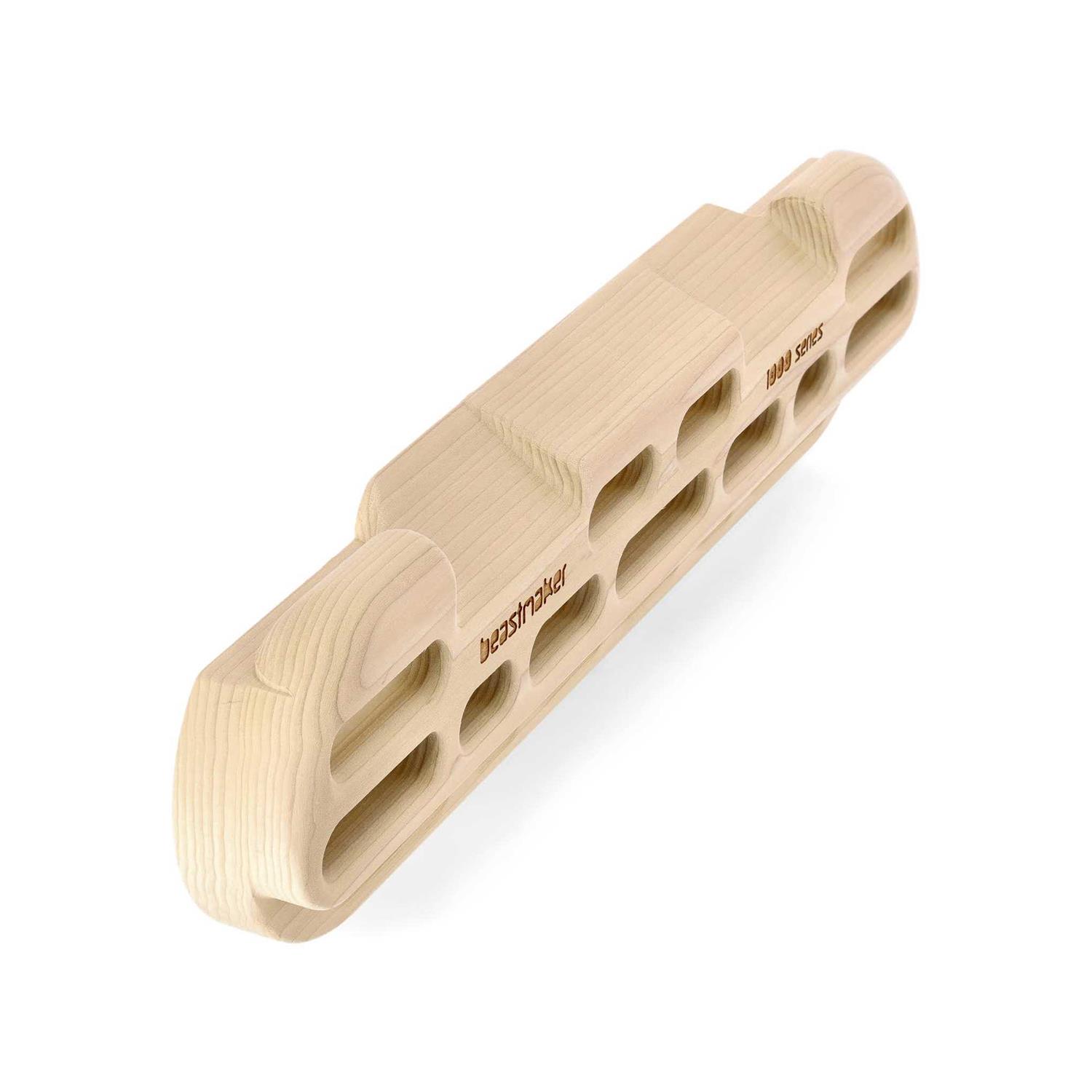 The Beastmaker 1000 fingerboard has been ergonomically designed for the hands of those who are a bit newer to climbing and training but want to progress quickly. This board is suitable for those climbing from 5a all the way to 7c or even further if you fancy trying some one armed deadhangs. This fingerboard is great for the less advanced climber as it has jugs and some variation of thepocket depths. The Beastmaker 1000 is made from wood with a very fine texture which is very kind to your skin and the holds have been radiused to avoid tweaking any fingers. Is provided with screws for installation.