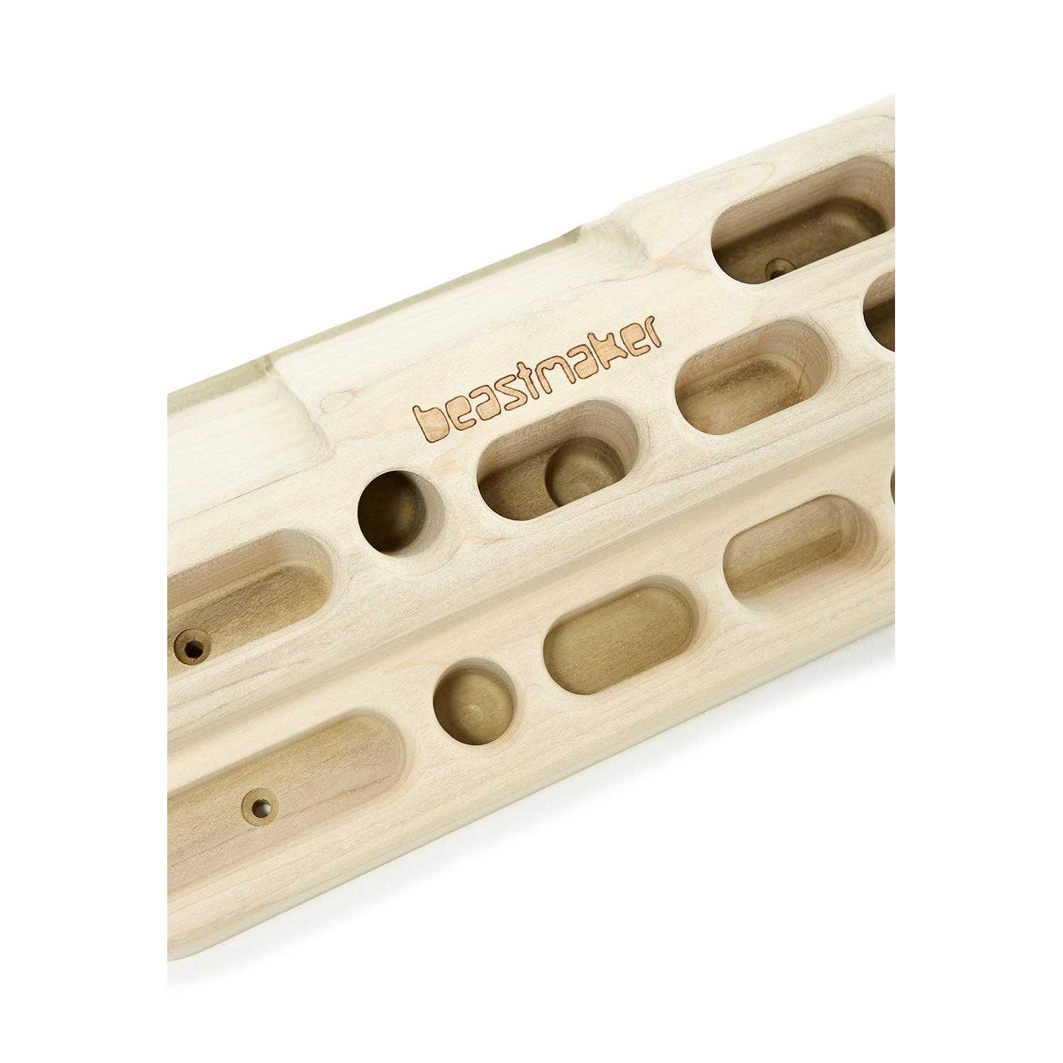 The Beastmaker 2000 is not a hangboard for beginners, it has been designed with the input of some of the best climbers the UK has to offer. The result is a hangboard which tests the limits of finger strength and will help you towards your high grade goals. The Beastmaker 2000 comprises of many holds which will let you specifically target your weaknesses and get stronger, comfortably, in all of the grip types. Every hold on the board has been well thought out and radiused in order to keep the chances of tweaking to a minimum and the wooden texture won’t ruin your skin whilst being grippy enought not to be frustrating. Wood is far superior to resin in terms of its natural properties of grip, porosity and texture, Wood is far and away the best training material currently available for finger strength, and the good news is it grows on trees!