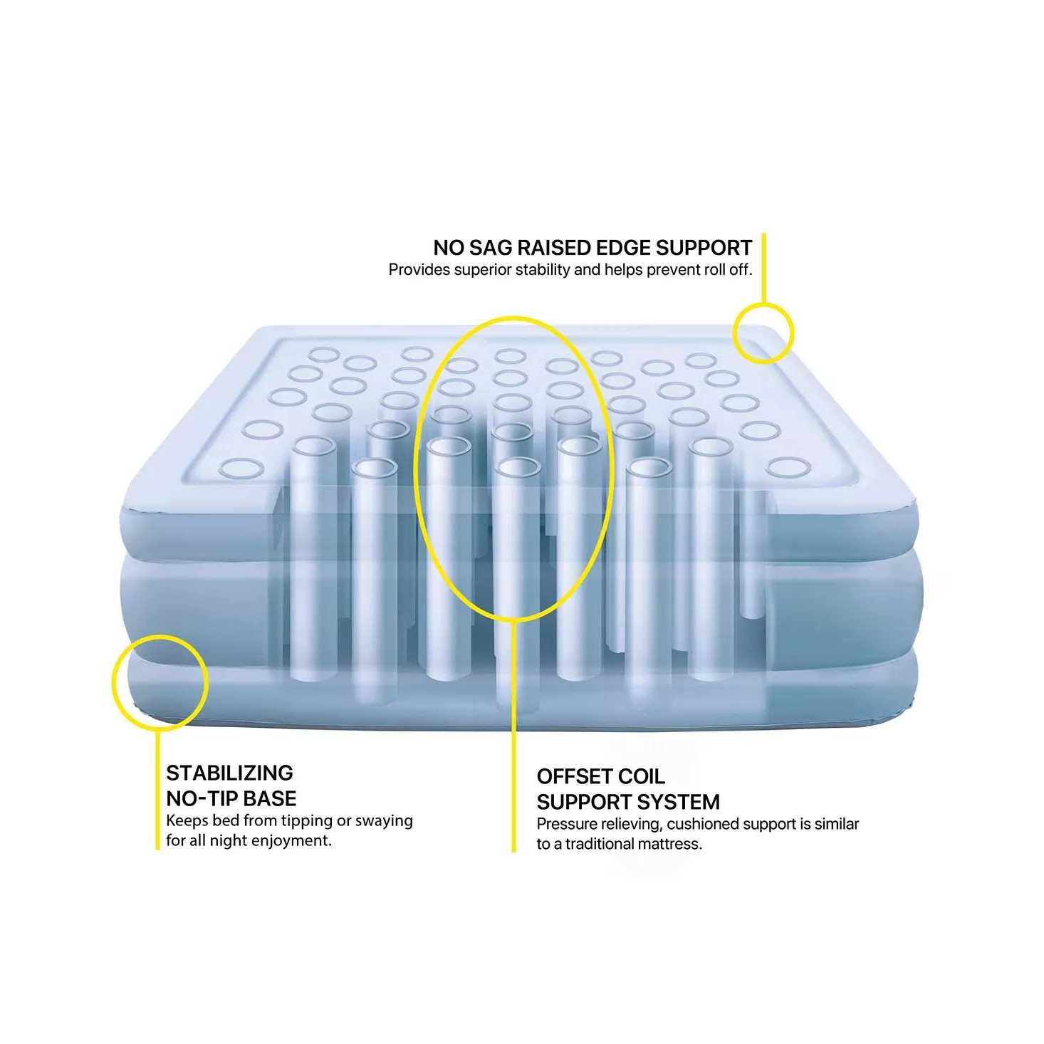 - Queen air mattress provides a comfortable, restful night’s sleep, perfect for out of town guests, sleepovers, travel, and more