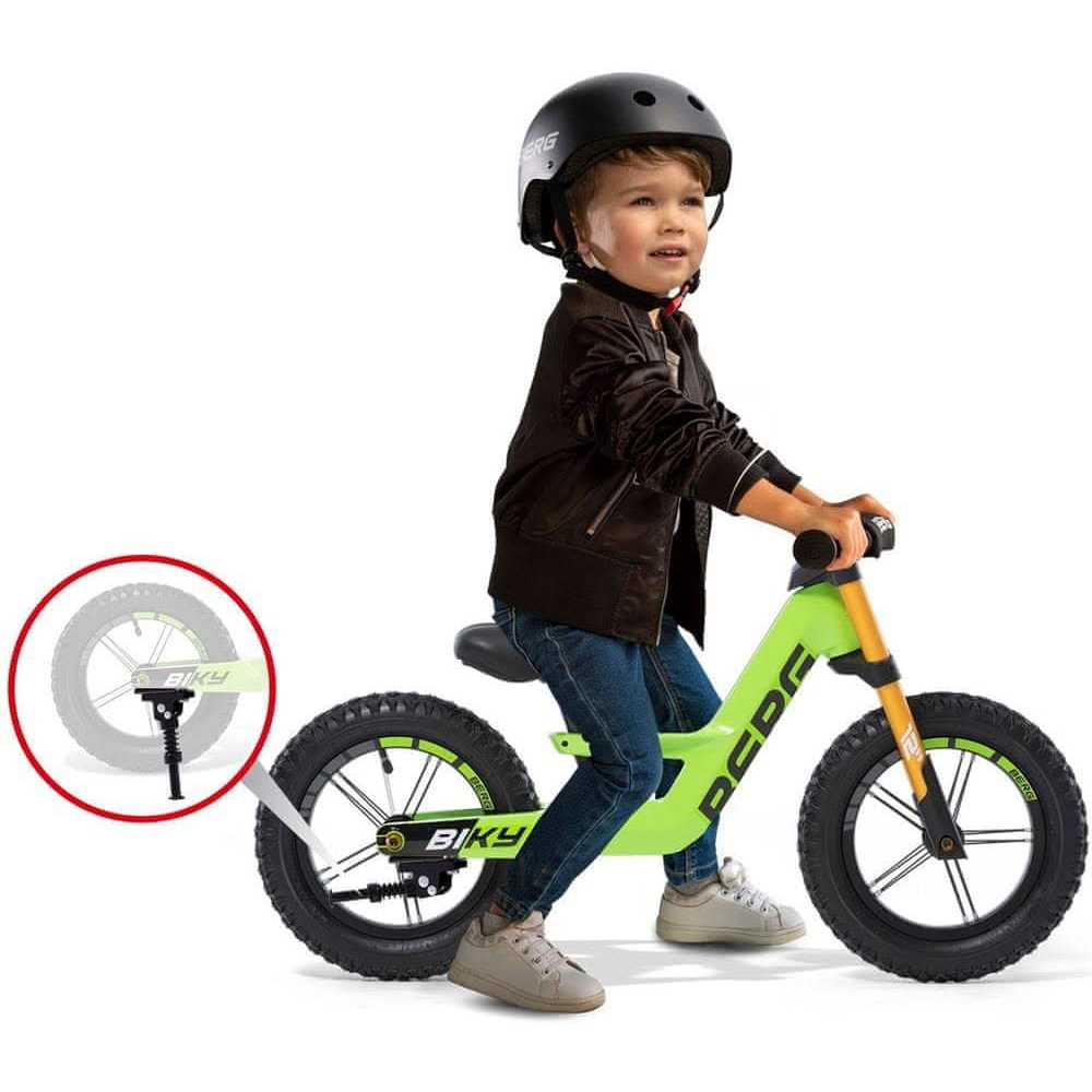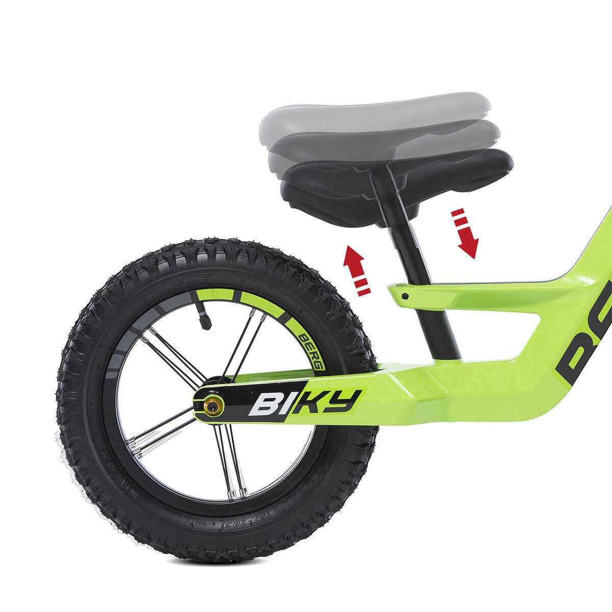 The BERG Biky is a balance bike for children aged 2 to 5. The BERG Biky has a striking, sturdy appearance thanks to its distinct design and double bicycle fork. Made of lightweight magnesium, the bike features a steering angle limiter, adjustable saddle and comfortable pneumatic tyres. The power of light weight By using the latest production techniques and lightweight magnesium, BERG has been able to develop an exceptionally sturdy frame with a very low weight. This makes the bike both easy to handle and great to ride. The importance of good ergonomics With its low instep and the height-adjustable saddle, the Biky is easy to mount and suitable for children between 85 cm and 120 cm tall. The saddle clamp is integrated into the frame and can be easily operated with the Allen key included. This makes height adjustment easy and stepless. Controlled steering A balance bike is the best preparation for independent cycling. Balancing on two wheels while learning to steer at the same time is quite a challenge at a young age.