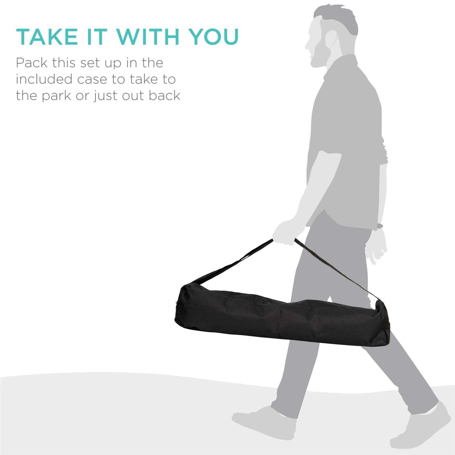 Complete with 6 mallets, 6 colored balls, 9 wickets, and 2 stakes, this set is great for the entire family to enjoy some friendly competition. Pack this set up in the included case and take it with you to the park or just out back. The set is color coordinated so each player can keep track of their ball. High-quality materials include mallets that are durably crafted with chip-resistant wood and rubber caps, plus elastic polymer balls that can withstand soft and hard strikes. Assembly is easy by screwing the threaded end of the handle to the mallet for use, and a slim design allows for easy storage after each session. Product Specifications: Mallet Dimensions: 32.5″ x 8″, Balls: 3″, Stake Height: 21″, Hooks: 8.5″, Carrying Bag: 33.5″ x 8.5″ x 9″