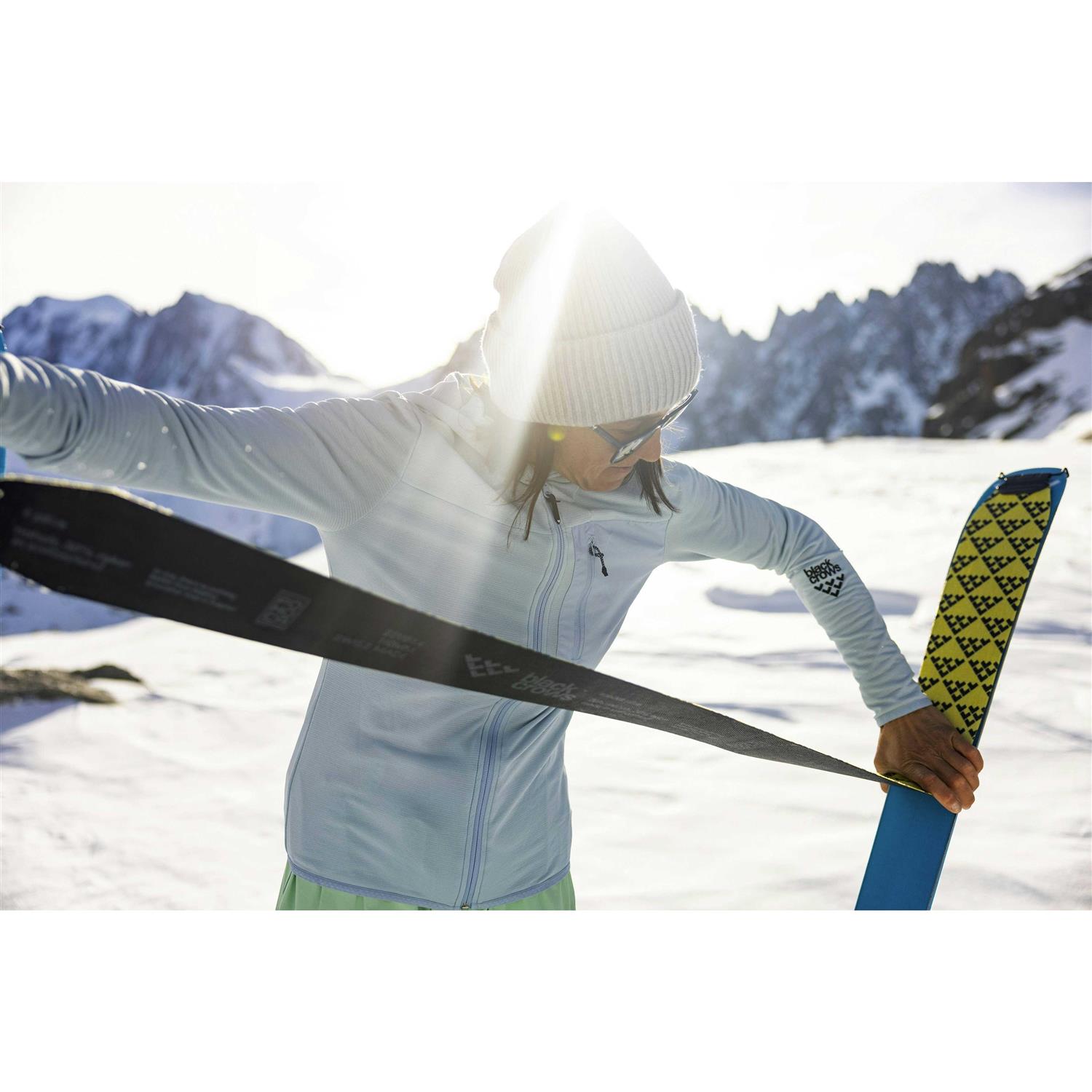 Black and yellow all over, Black Crows skins are shaped and pre-cut according to the shapes of the different freebird skis. All of the skins are 70% mohair and 30% synthetic material and have been relentlessly tested in conditions ranging from dry cold to humid heat. Made in austria, the skins are ultra resistant, lightweight, compact, and easily stored in the bag provided. 70% mohair 30% synthetic for the best ratio gliding / grip / durability. Fitted metal tip hook. Polyamide buckle. High resistance elastic. Double layer hybrid glue. Perfect adhesion to the ski base, even at super low temperatures. Effortless removal from the ski without adhesive trace on the base. Easy handling as the skins can be folded on themselves. Maintenance free as the adhesive does not have to be re-glued. Compatible with the Black Crows Navis Freebird skis.