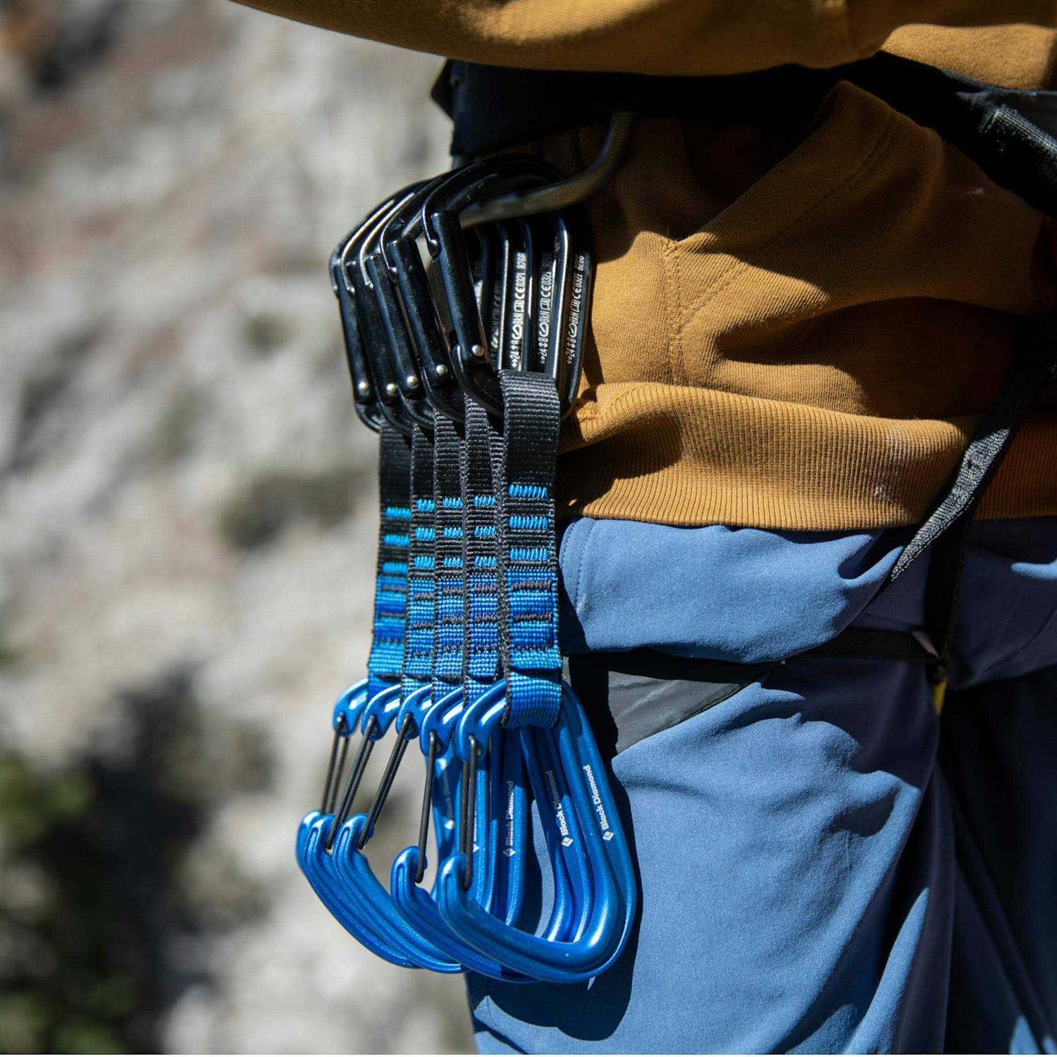 Pack of six quickdraws from Black Diamond with smooth clippability and wiregate functionality The Black Diamond HotForge Quickpack features six of Black Diamonds HotForge Hybrid quickdraws, each with keylock carabiners at the top and classic wiregate on the bottom, perfect for smooth clipping and easy cleaning.With a closed gate strength of 24kN, the HotForge quickdraws feature a snag-free HotForge keylock carabiner on the top and classic HotWire on the bottom, along with a durable 18 mm polyester dogbone with an integrated Straitjacket insert to keep the bottom biner in an optimal clipping position. A light and smooth design makes clipping easy and eliminates snags, whilst the bent bottom biner coloured to provide a visual climbing target. Clip-in smoothly and go with the Black Diamond HotForge Hyrbid Quickdraws, a great option for everything from sport climbs to trad routes.