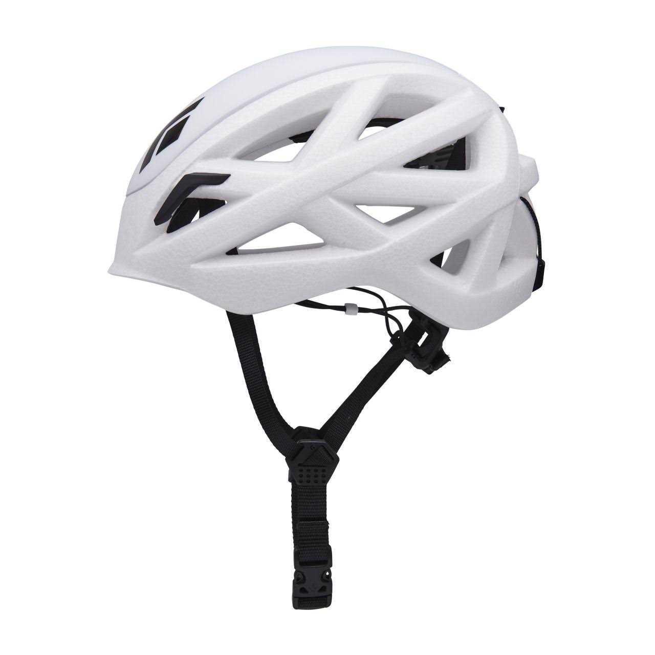 Our superlight, go-anywhere helmet got even lighter. The updated Vapor helmet’s two-piece construction contains a layer of super-light ALUULA composite under the polycarbonate crown for added protection and reduced weight. Molded EPP foam makes up the sides, providing ample venting with the same sleek aesthetic. An ultralight cord fit system makes adjustments and fit easy to fine-tune. Streamlined (and replaceable) headlamp clips are ready for alpine starts or after-dark raps.
