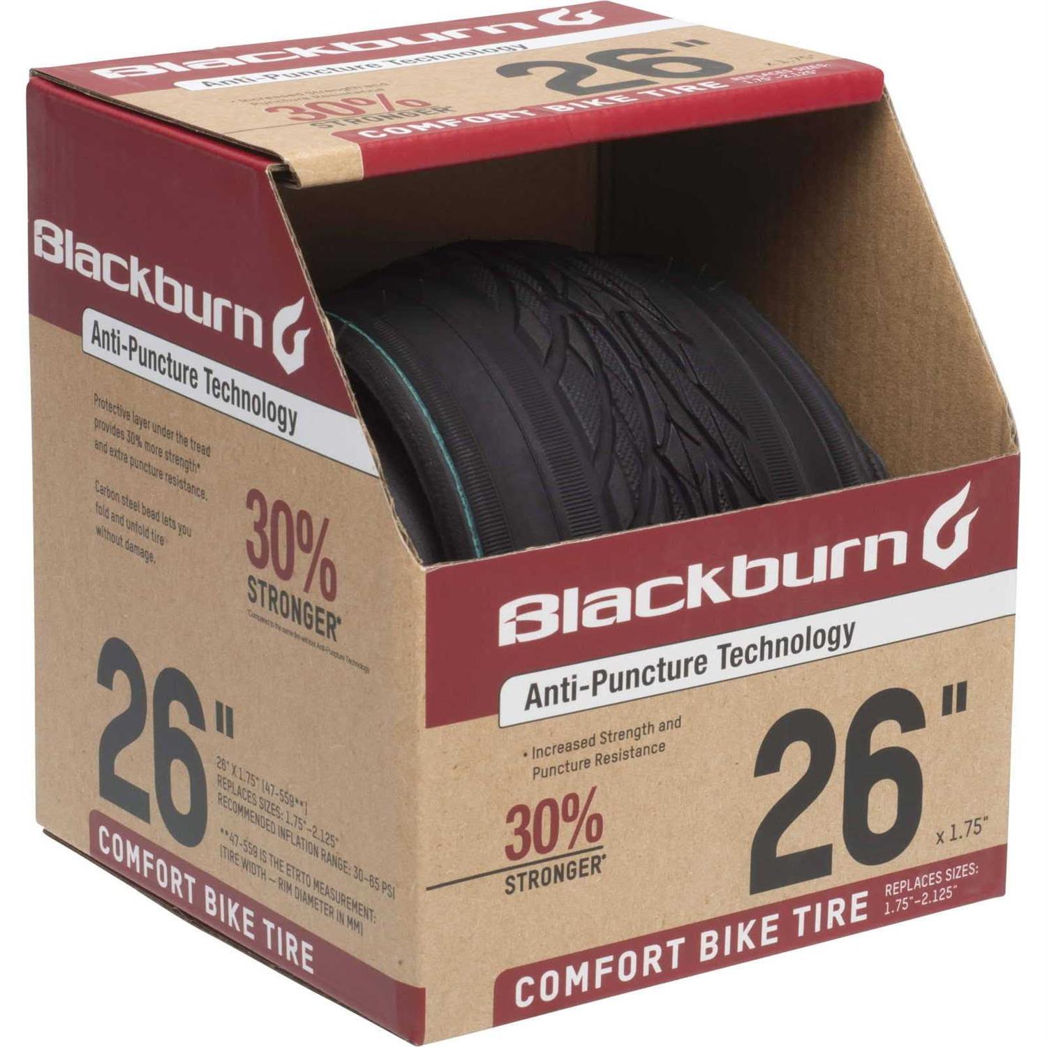 The Blackburn 26 inch Comfort Bike Tire with Flat Protection is a smart choice for anyone who owns a compatible bike. Flat Protection technology provides a protective layer with increased strength and extra puncture resistance. Our comfort bike tire features a carbon steel bead for extra safety, and tire strength. They are extremely durable and built to stand up to the elements. feature a new optimized tread pattern for easy, around-town rides. Conveniently, these tires fold and unfold without damage, making them easy to transport from place to place. Blackburn tires are ultra-durable and made for adventure. The tires will stand the test of time, ride after ride