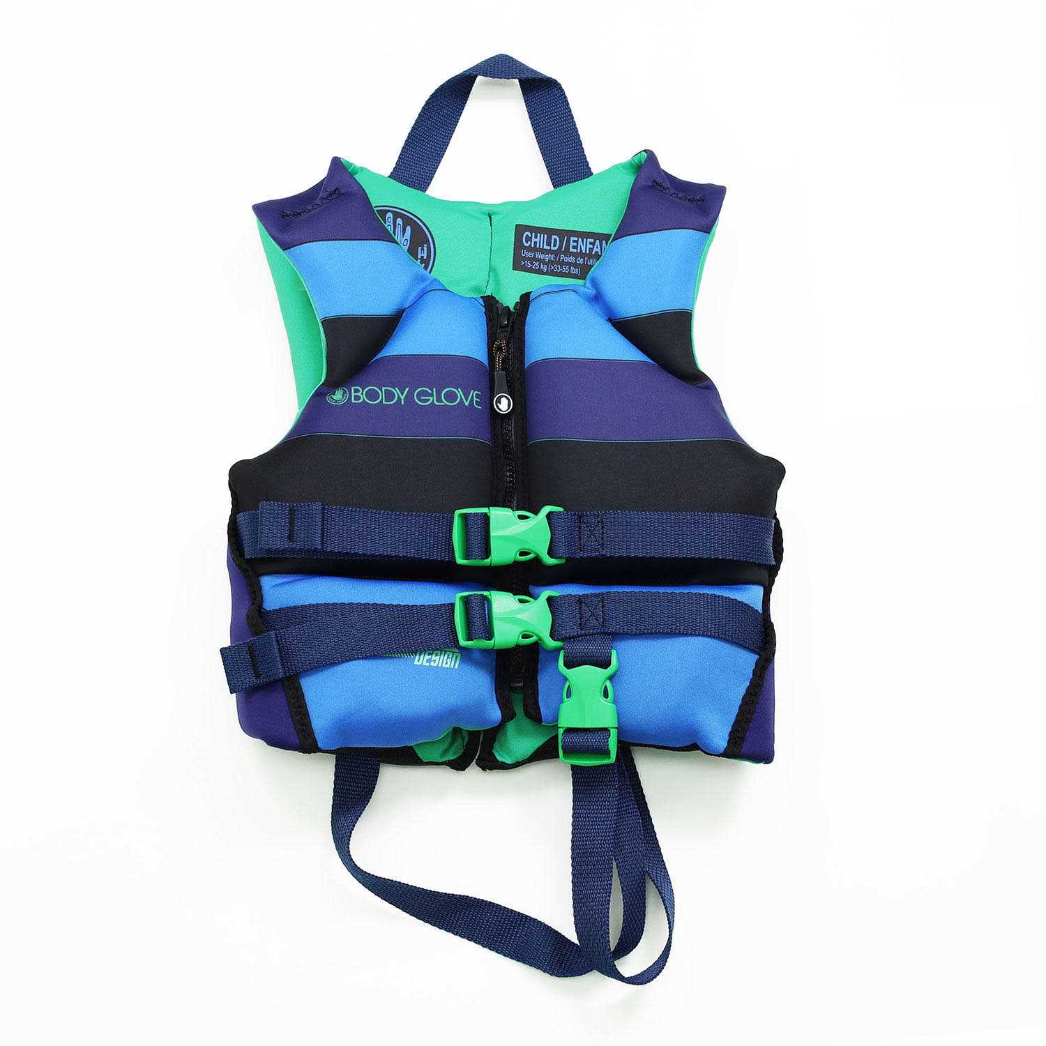 The Body Glove Child Segmented PFD provides safety and security for your child on a boat and in the water. Lightweight, durable, yet flexible construction allows for a comfortable fit all day long. The U.S. Coast Guard-approved vest comes with a neckline safety strap as well as a padded undercarriage strap for additional security. This vest fits children ranging from 33-55 lbs.Features & DetailsThis PFD features strategically-placed mesh drain panels, while durable heavy-duty quick-release buckles make it easy to get off. Anatomically cut for ultra comfort and fit, the multi-segmentation panel on the front and back provides maximum flexibility. The Body Glove Child Segmented PFD features a breathable, lightweight and flexible EVO-PRENE exterior and a crotch strap for safety with an EVO-PRENE wrap for comfort.