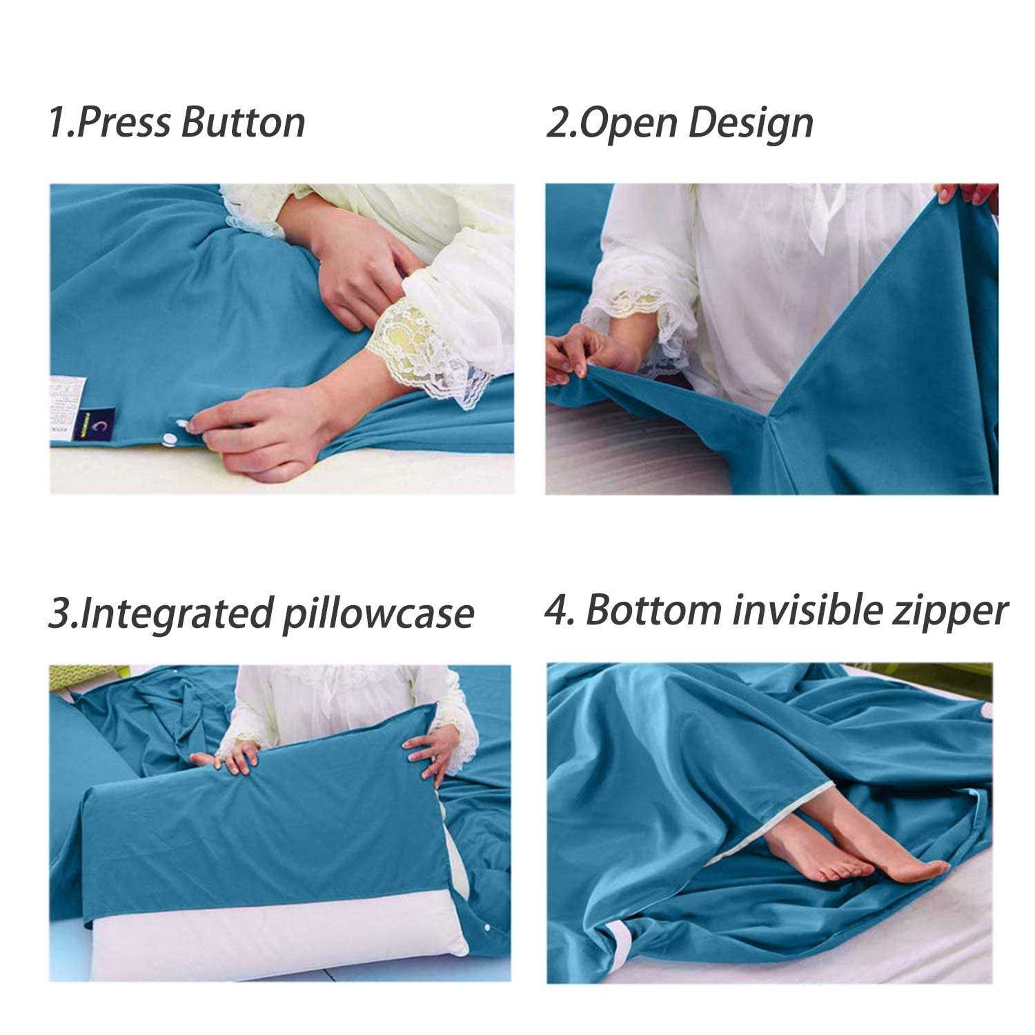 Bonng Sleeping Bag Liner Lightweight Compact Sleeping Bag Sack Portable Clean Travel Sheet with Zippered Opening for The Feet Camping Sleep Sheet