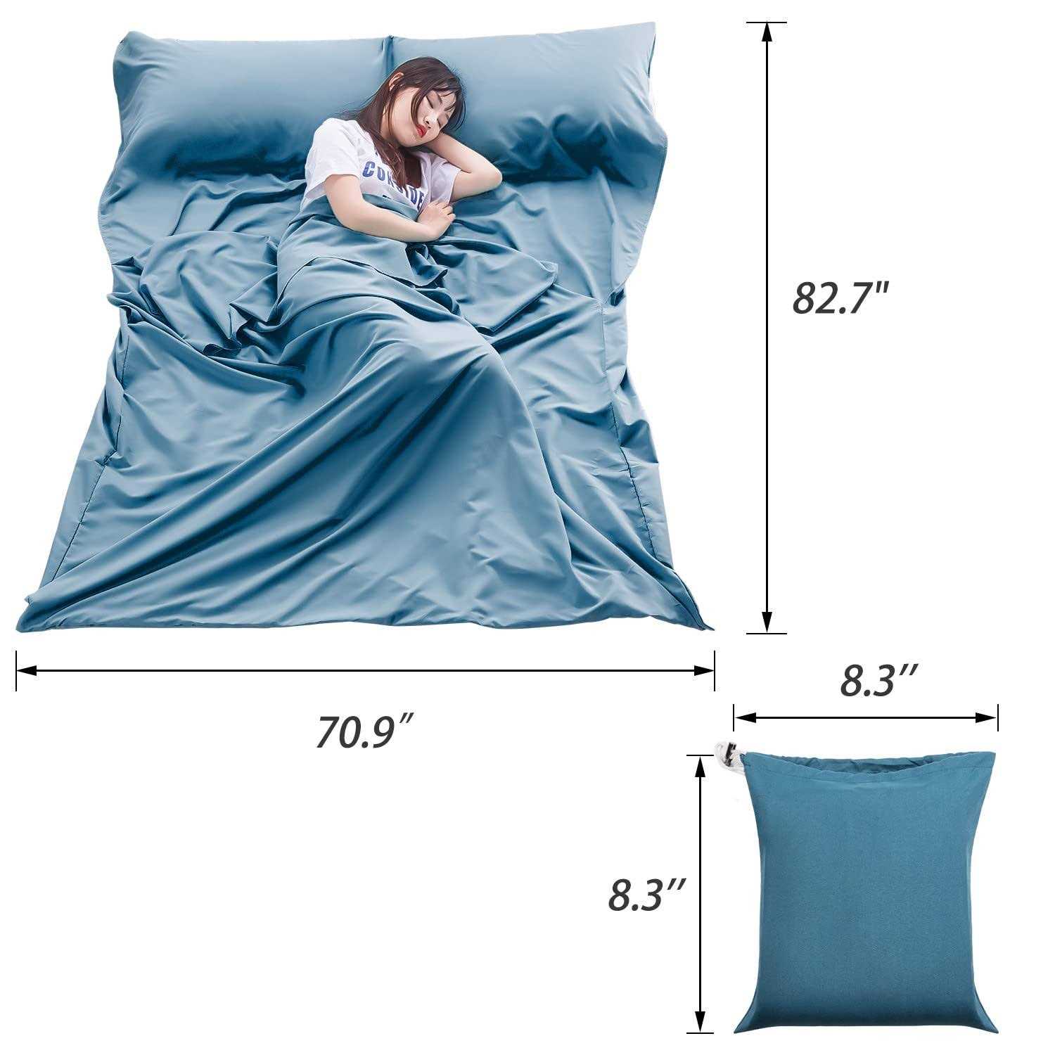 Feature of Travel Sleep Sheet The sleeping bag liner is made of breathable skin-friendly polyester fiber, offer a hygienic sleep environment and ensure you with a comfortable sleep on travel,youth hostels,picnic,planes,and trains. The Ultra Light Slim Portable Sleeping Bag Liner provides a noticeable thermal improvement to your sleeping bag in summer. Also great for situations when camping in cold winter nights. The sleeping bag has a size of 210cm x 180cm in a very compact pack size and offers so much space when sleeping. Specification of Sleeping Bag Liner Fabric: Premium Polyester Double Use Size: 70.9 x 82.7inch(180 x 210cm) Wash Method: Delicate Cycle Do Not Bleach Machine Wash Cold Tumble Dry Low Heat Package List: 1 x Sleeping Bag Liner 1 x Carry Bag Warm Notice 1. Please refer to the measurement. A slight measuring error is allowable in normal range. 2. There might be a little color difference due to the monitor, camera or other factors, please refer to the physical item.