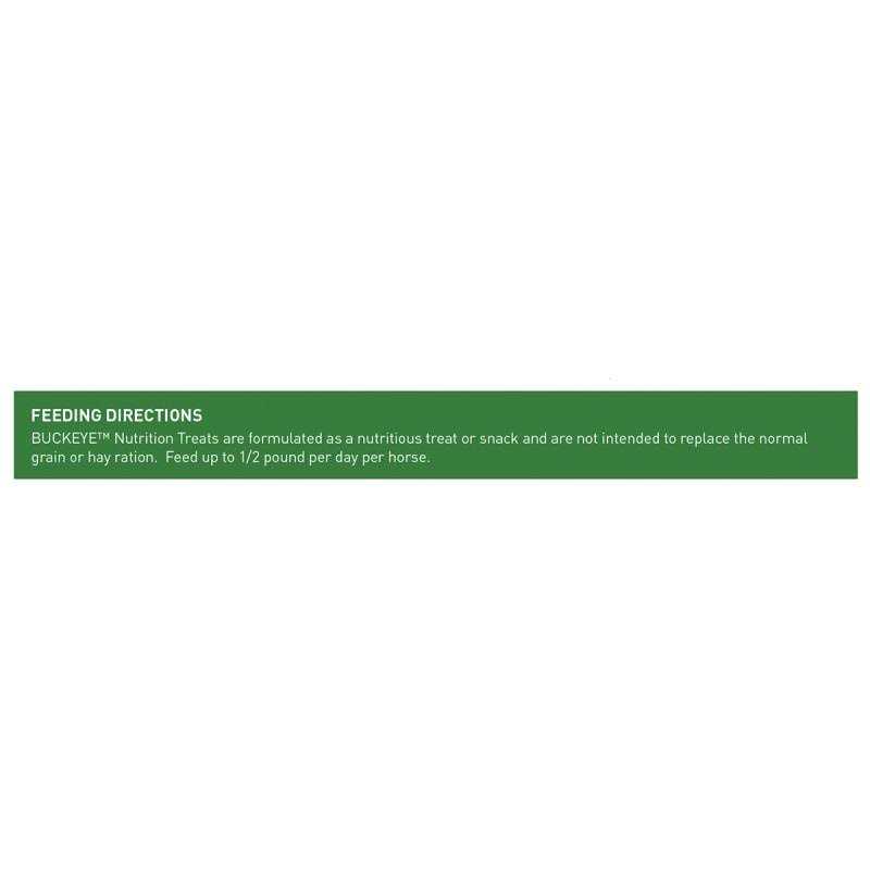 Buckeye Nutrition Treats – all–natural, handy, disc-shaped treats are highly digestible, tasty, healthy rewards for horses of all ages. Plus, theres no sugar added! Feeding directions: up to 1/2 lb daily per horse. Not intended to replace normal grain or hay ration. Resealable bags. Apple Snaps are made with real apples! Carrot Crunchers are made with real carrots! Both flavors contain min 12% crude protein, min 5% crude fat, max 10% crude fiber, calcium, phosphorous, copper, selenium and zinc. Peppermint Bits are made with natural peppermint oil. Contain min 12% crude protein, min 3.5% crude fat, max 5% crude fiber, calcium, phosphorous, copper, selenium and zinc.
