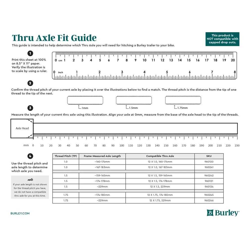 - For proper sizing, please consult the Burley Thru Axle Fit Guide.
