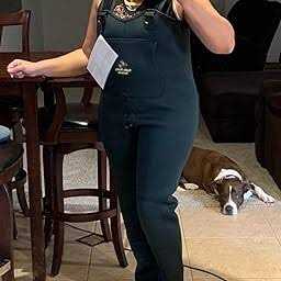 - Comfortable green neoprene pants with adjustable suspenders, fleece hand warmer pocket and sliding gravel guard.