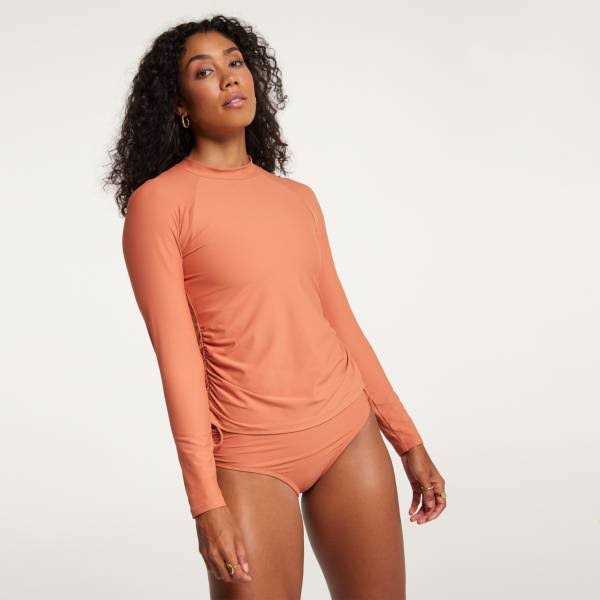 Fit & design: fitted long sleeve rash guard. Full coverage design for maximum protection. Straight hem. Technology: bodyfree technology inhibits odor-causing bacteria and with an incredibly resilient application directly on the fabric, it lasts wear after wear so you stay fresh. BodyUV filters out harmful UV rays and helps protect you from the sun. Additional details: contains recycled materials as part of a commitment to sustainability. This garment is designed with more than 70% recycled fabric.