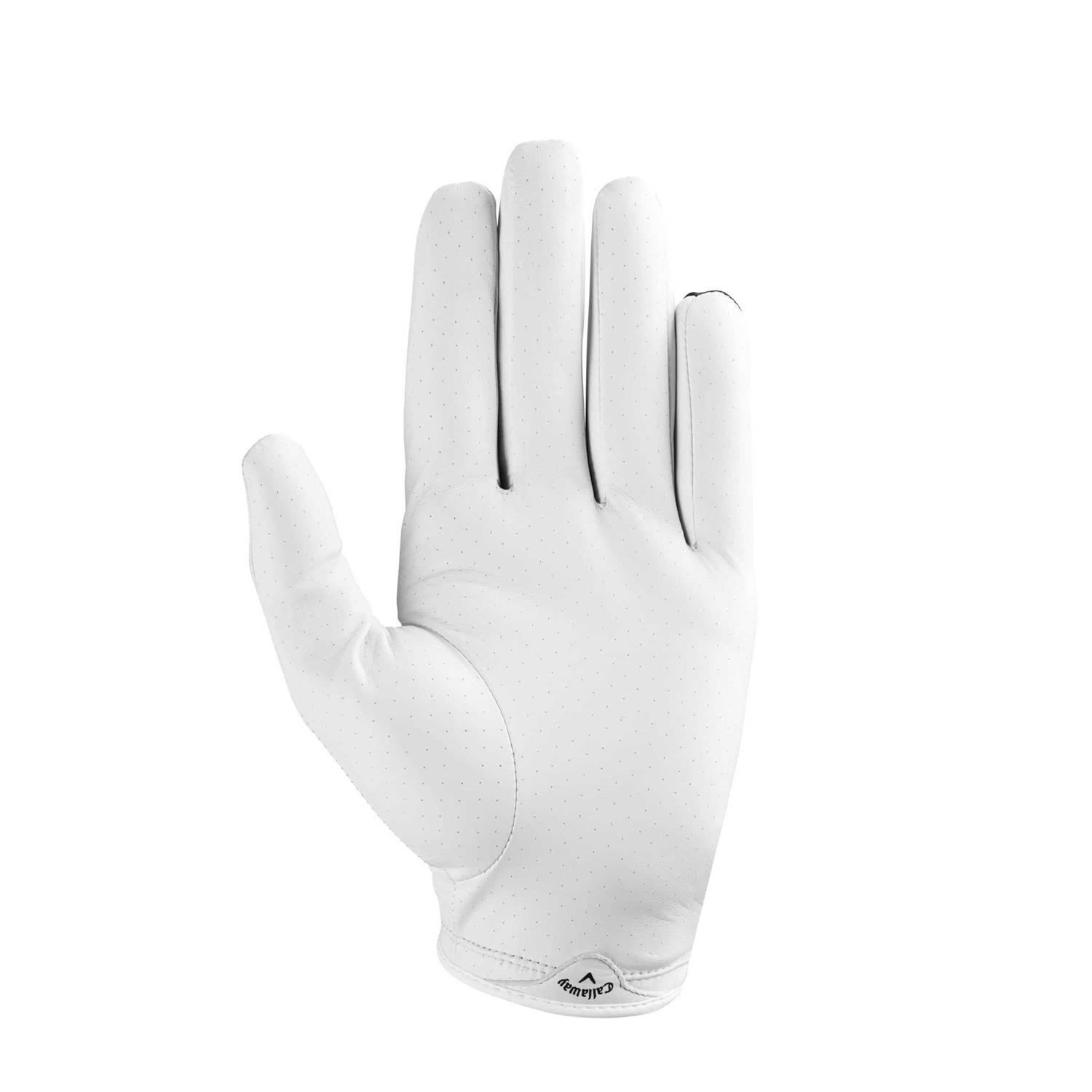 The optimal blend of technology and performance, Callaway X Spann Golf Gloves enable remarkable grip performance and comfort. Callaway’s first compression fit golf glove features premium Cabretta leather infused with Griptac to create a 20% increase in tackiness over prior models. and X Spann 4-way stretch construction combines with a stretch cotton terry cuff to create moisture wicking, breathability and UPF 50+ sun protection. The Opti Fit perforated adjustable closure creates a secure, breathable fit. FEATURES: Callaway’s first compression fit golf glove, now packed with new and improved design features. Designed to provide the fit and feel of a second skin fused with optimal grip performance. Premium Cabretta leather infused with Griptac to create a 20% increase in grip tackiness. X-Spann 4-way stretch construction provides moisture wicking, flexibility and UPF 50+ protection. Stretch cotton terry cuff provides a secure feel and moisture wicking properties for lasting comfort. Opti Fit perforated adjustable closure provides a breathable, secure fit.