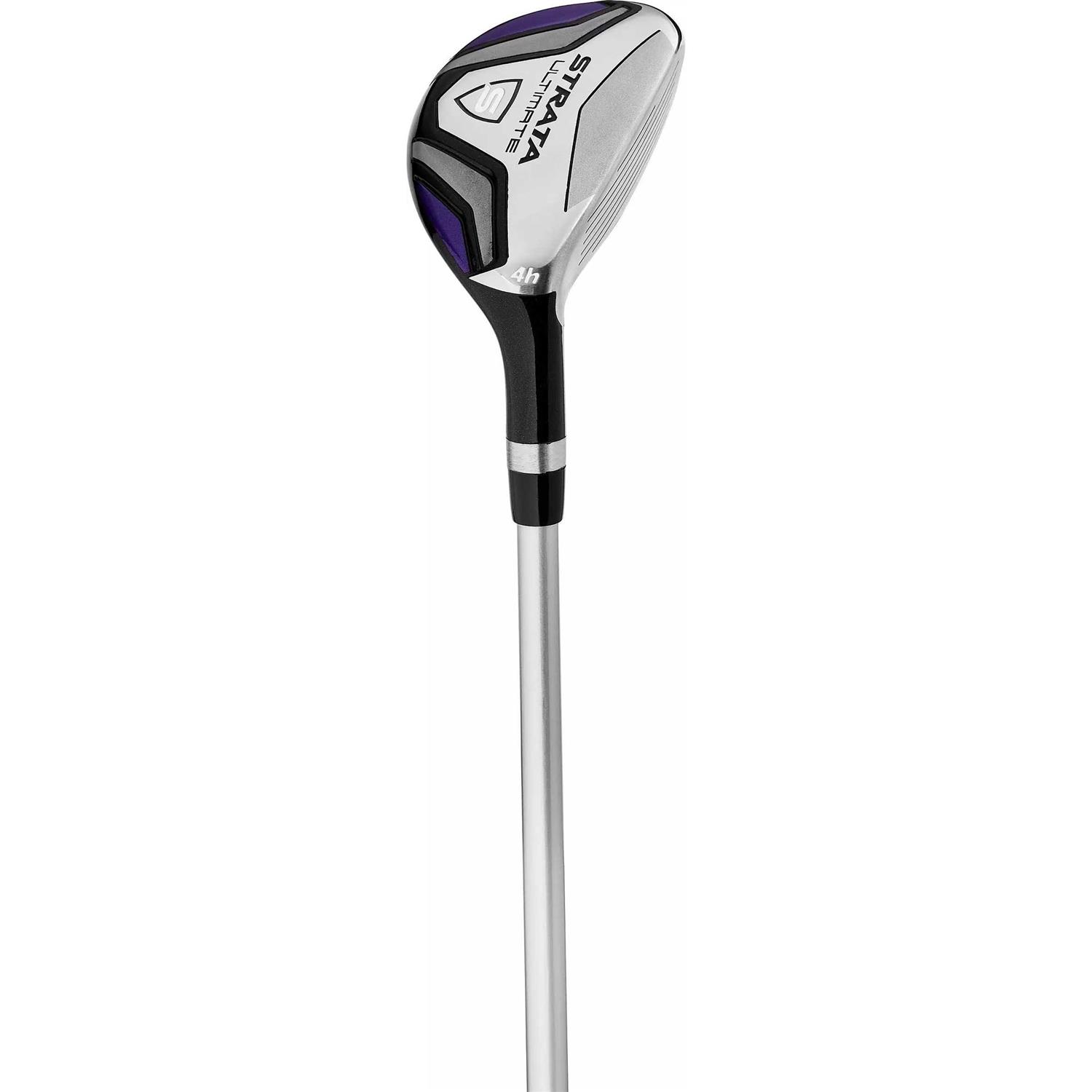 Strata Ultimate Women’s Set is designed for ultimate distance and ultimate performance for women with modernized golf technology to cover you from tee to green. Set Includes: Driver, 3 Wood, 4 & 5 Hybrid, 6 – 9 Iron, PW & SW, Putter, Stand Bag, 4 HeadcoversWe packed the Strata Ultimate Women’s Set with modernized golf technology to give you ultimate distance, performance, and forgiveness for every club in the bag. Expect longer shots with ease, more control and more confidence, all at an incredible value. The full complement of clubs will have you covered from tee to green. Included: Driver Full titanium driver gives you a large sweet spot and more forgiveness to bomb it off the tee. (Headcover included) Fairway Wood A very forgiving 3-wood built for long, high flying shots in a more aerodynamic head shape. (Headcover included) Hybrids They’re great alternatives to long irons, so you can play with more confidence on a variety of shots. (Headcovers included) Irons/Wedges High flight technology delivers distance, forgiveness, and control from stainless steel irons. Putter Precise face milling is designed for better accuracy and distance control to help you sink more putts. Stand Bag Lightweight, durable bag combines a cool authentic look, convenient pockets, and an easy to carry back strap.