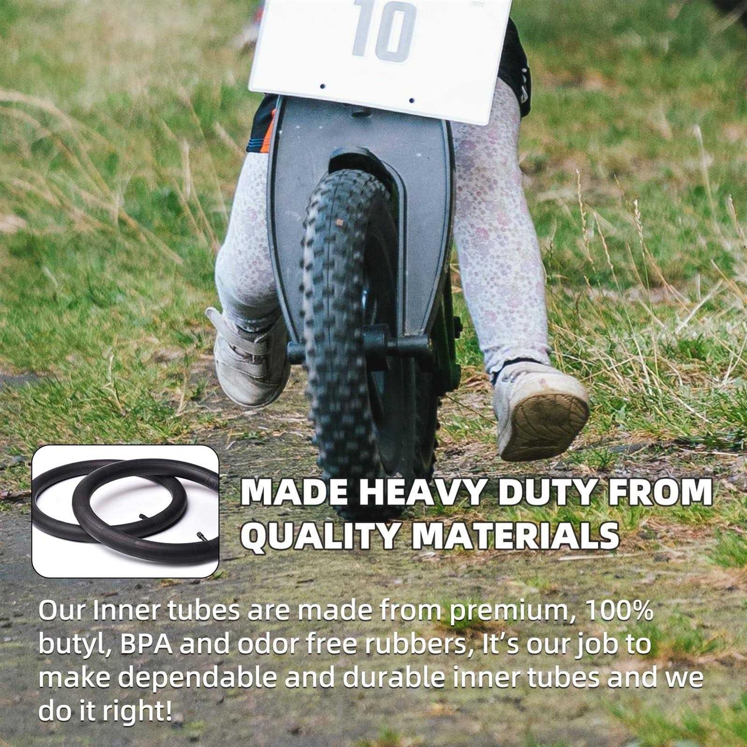 Superior-Quality Inner Tubes Pneumatic tires are only as good as their inner tubes. The CalPalmy 20 inch x 1.75/1.95/2.125 inch Kids Bike Replacement Inner Tubes offer clear advantages on quality and performance. Thicker, stronger, and more durable than average inner tubes, these inner tubes offer superior shock and vibration dampening, tear-resistance, wear-resistance, aging-resistance. Ride comfortably, as these inner tubes allow you to feel like gliding over rough and bumpy spots. And for kids experiencing their first foray into riding bikes, the comfort and safety of these inner tubes will contribute to the wonderful memories they’ll have of this time. Ride Longer and Safer with Our Explosion-Proof Inner Tubes Glass shards, sharp rocks, and thorns are the bane of bike tires and inner tubes. Don’t let these little obstacles bring injury to you, too. Explosive punctures should be a thing of the past. With these explosion-proof inner tubes, punctures will cause an airtight seal to form around the puncture’s perimeter to prevent rapid air loss and give the rider time ample time to stop and patch up the damage. Over-inflation explosions are especially problematic with thinner tubes as they can’t withstand even a little extra pressure. CalPalmy’s inner tubes, on the other hand, have thicker and evenly-molded butyl rubber walls that are designed to hold extra pressure and weight.