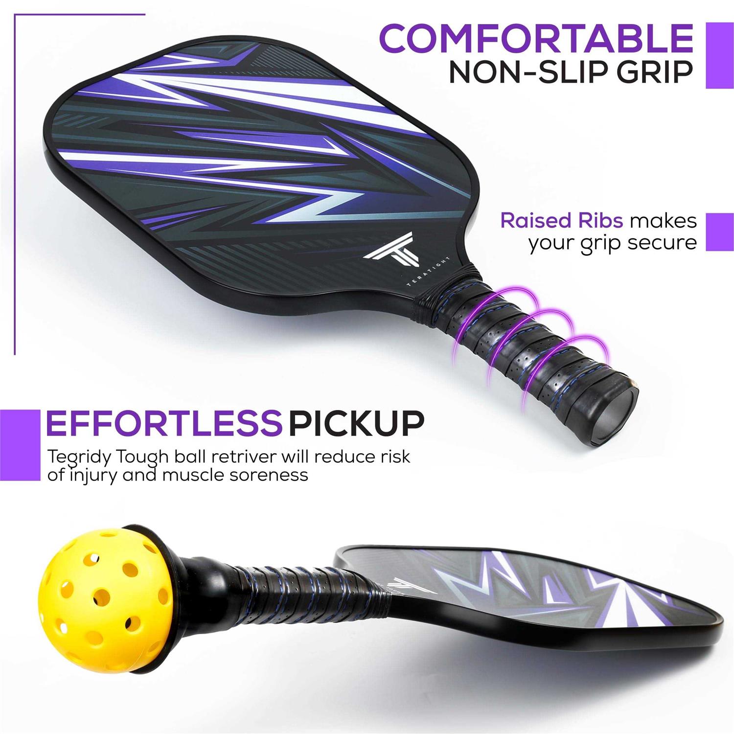TEGRIDY Tough Carbon Fiber Pickleball Paddle Set of 2 – Pickle Ball Rackets 2 Pack – 4 Pickle Balls, Lightweight Carrying Bag with 2 Retrievers, Pickle Ball