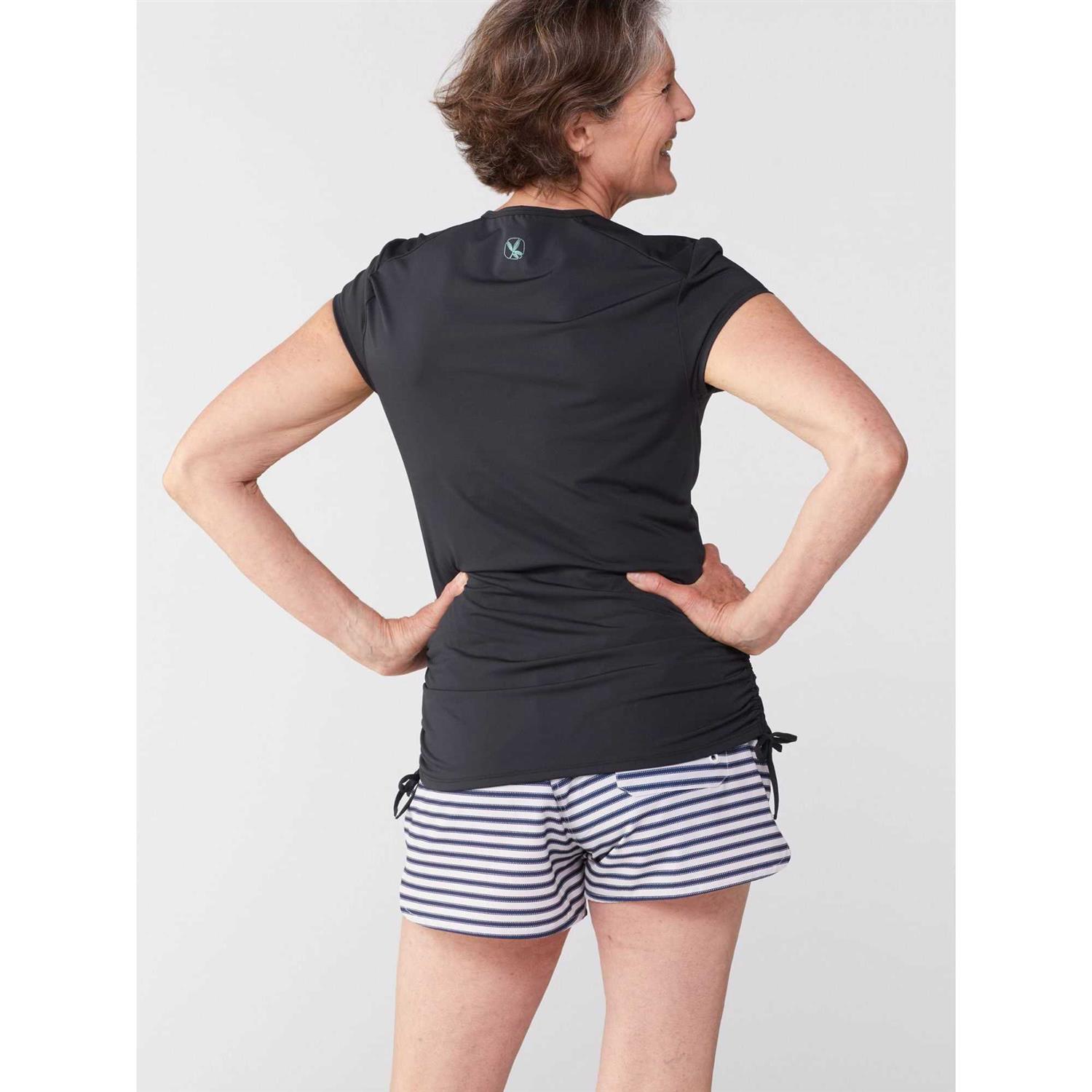 Inspired by the beach waves and water; Carve Designs combines effortless style with purpose for today’s active woman. The Dawson Rashguard is great for warm summer days when need more sun protection than your swimsuit can provide. With Cap sleeves half zip and adjustable side shirring you can wear it the way you want to. 50+ UPF Rating. Cap sleeves. Half zip at neck is 13 inches long. Adjustable side shirring with self-fabric ties. Custom 6.9 Oz 4-way stretch tricot. 82% Nylon 18% Spandex. Machine wash cold line dry. and Imported.