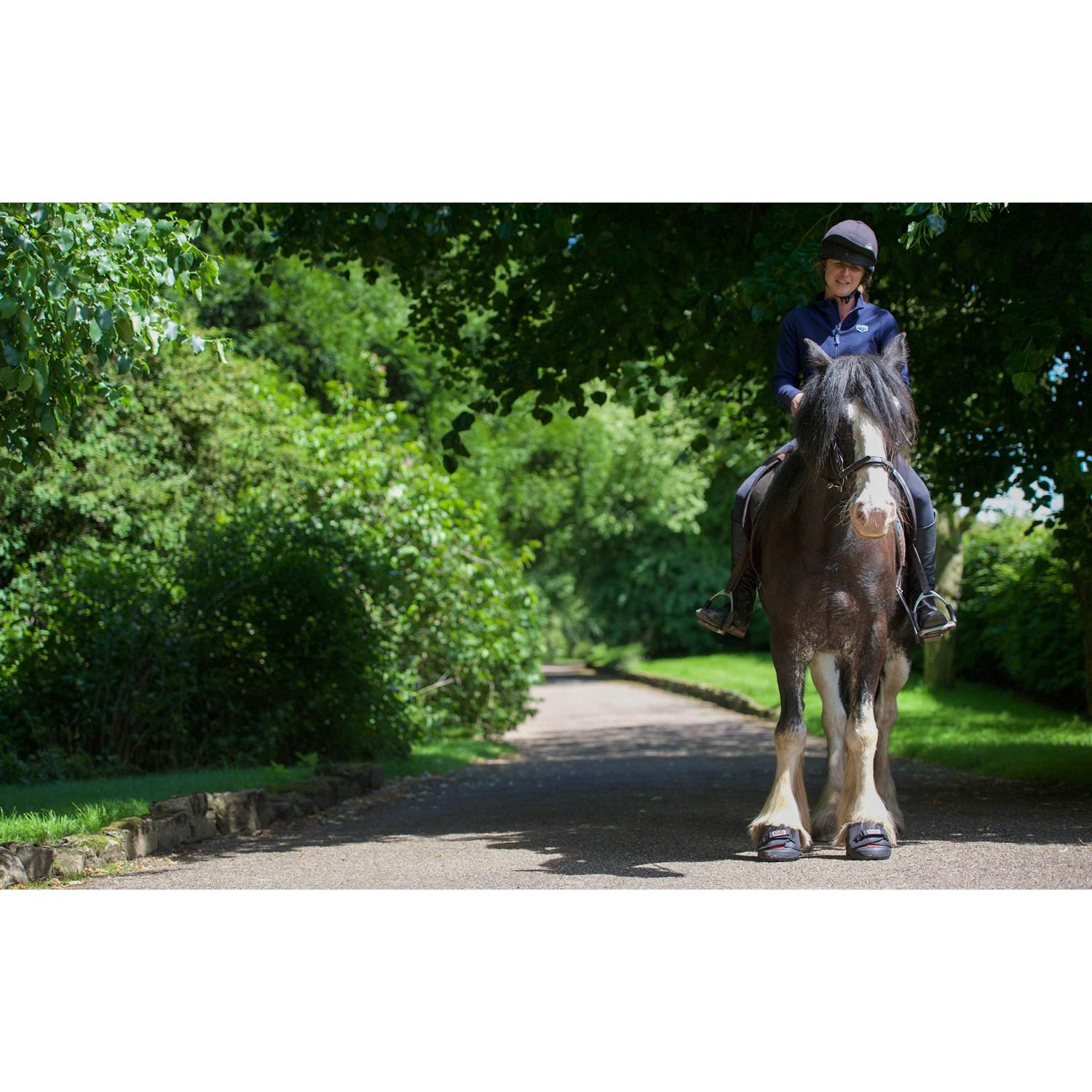 The ELB Boot by Cavallo is an Entry Level Boot (ELB) perfect for those still nervous about transitioning into being ”barefoot and booted” and those who are already barefoot but require protection only on limited occasions. Also ideal for rehabilitation and therapeutic purposes; makes an excellent ”spare tire” for a lost shoe. Uncompromising in quality and specification. Upper material is Cavallo’s 1680 count Denier industrial grade nylon the same material used on Cavallo Sport style hoof boots, which have been tried and tested in all terrains since 2008. Replaceable Velcro closure extends boot’s working life in the event of Velcro fatigue. Easily fastened by 8 and 80 year-olds alike, the strap does not require a screwdriver, extra physical strength or any other tools. Features unique, built-in side drainage slots (not drain holes, which clog up). Single boot.