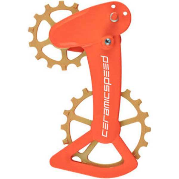 Improve your drivetrain performance and reduce drag with the CeramicSpeed OSPW X Cerakote-coated pulley wheel system. This pulley wheel set is made with a carbon fiber arm and features CeramicSpeed’s premium coated bearings for long-lasting performance. The pulley wheels have a narrow-wide tooth profile and feature 14-tooth upper and 18-tooth lower pulleys. The custom-coated pulley wheels help to reduce chain drag while the custom-designed carbon fiber pulley cage ensures both durability and a low weight.