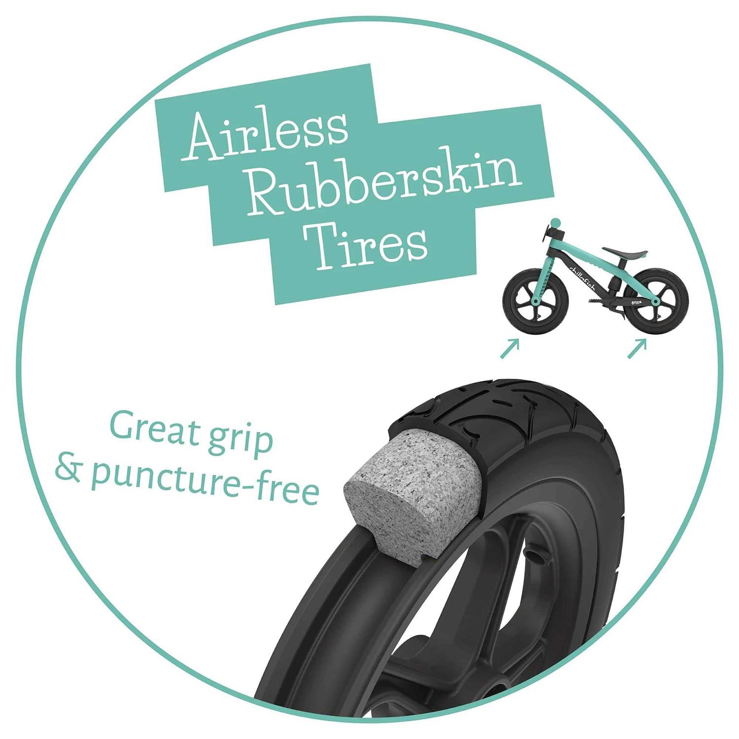 - Airless rubber skin tires great grip and no pumps – that’s best of both worlds