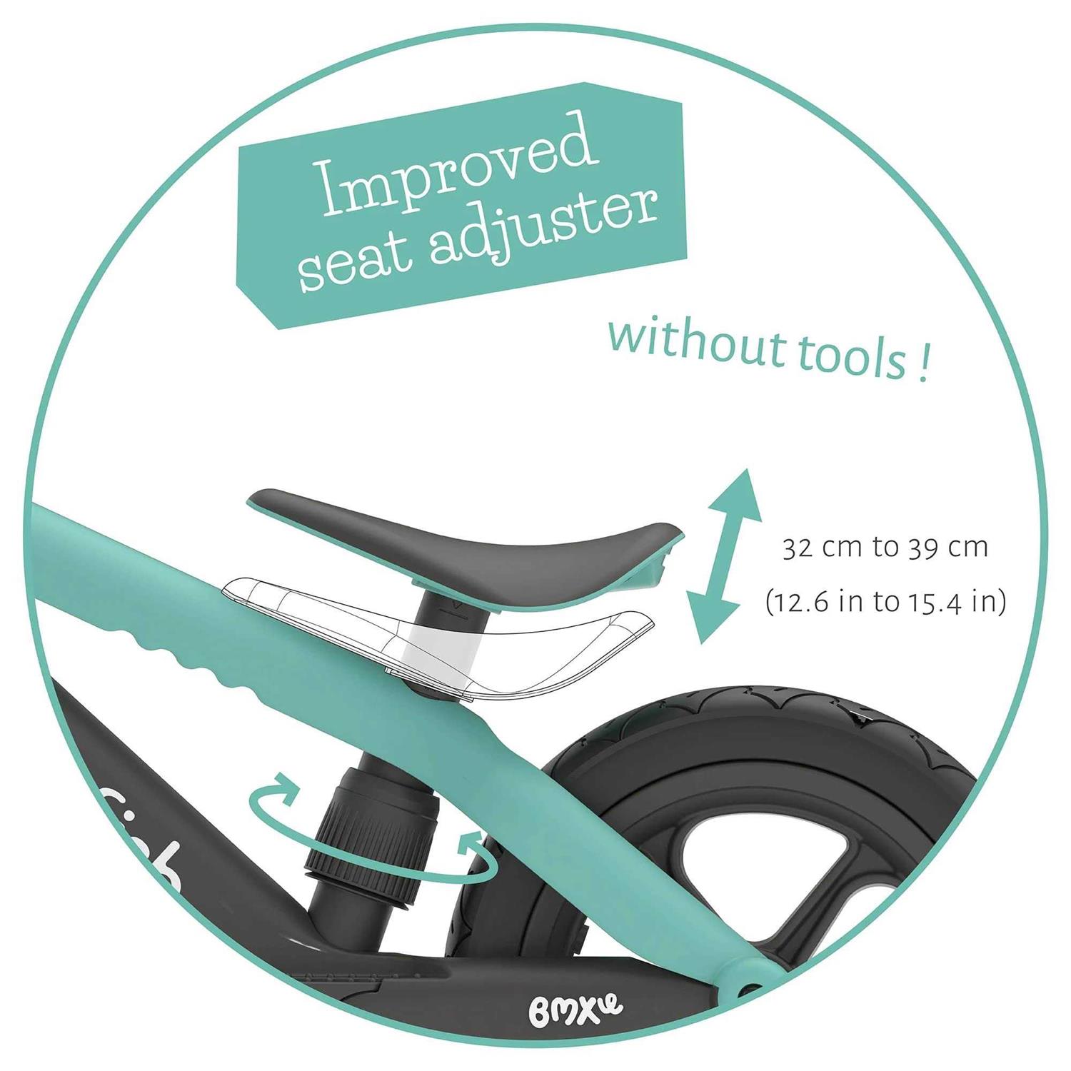 Chillafish BMXie2 balance bike is probably the coolest balance bike in the world. Now with integrated footrest and footbrake for learning to brake and for learning cool tricks. BMXie2 is built from reinforced plastics and is therefore very lightweight (3,6 kg) which makes it very easy to carry, both for your toddler and for you as parent. The airless 12-inch RubberSkin tires not only give perfect grip, but you also don’t have to inflate them anymore! The front number plate is detachable and comes with various stickers for cool customisation. BMXie2 is the second generation, an evolution of the original BMXie with even more features and further improved engineering. This is for sure the coolest balance bike in the world! BMXie2 seat adjusts without tools from 12,6-16,1 inch / 32-41 cm.