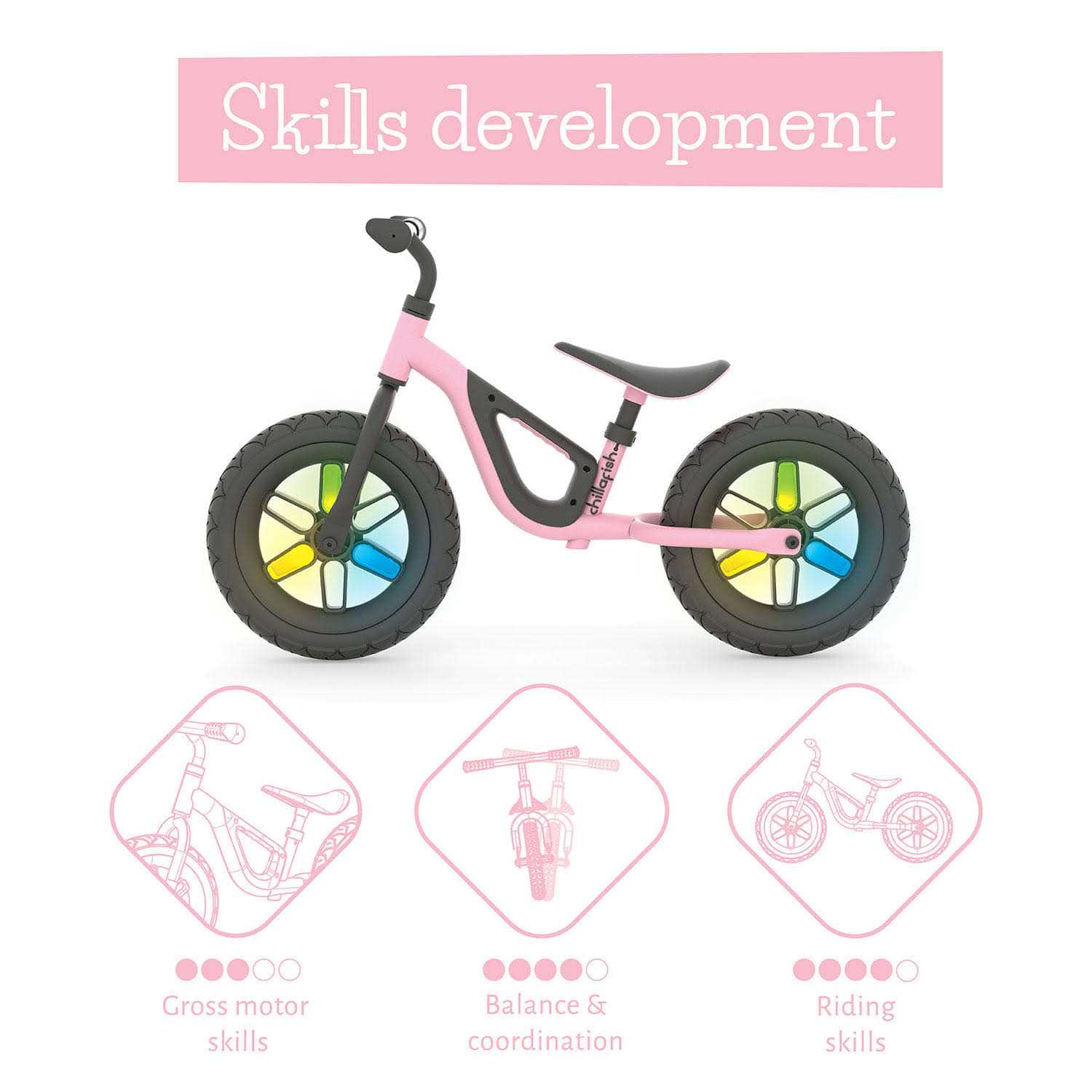 Chillafish Izzy Glow 12″ Balance Bike with Light Up Wheels, Pink