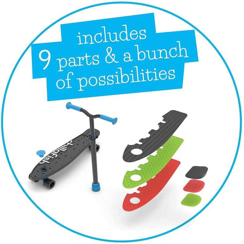 Chillafish Skatieskootie Customizable Training Skateboard and Lean-to-Steer Scooter with Detachable Stability Handlebar